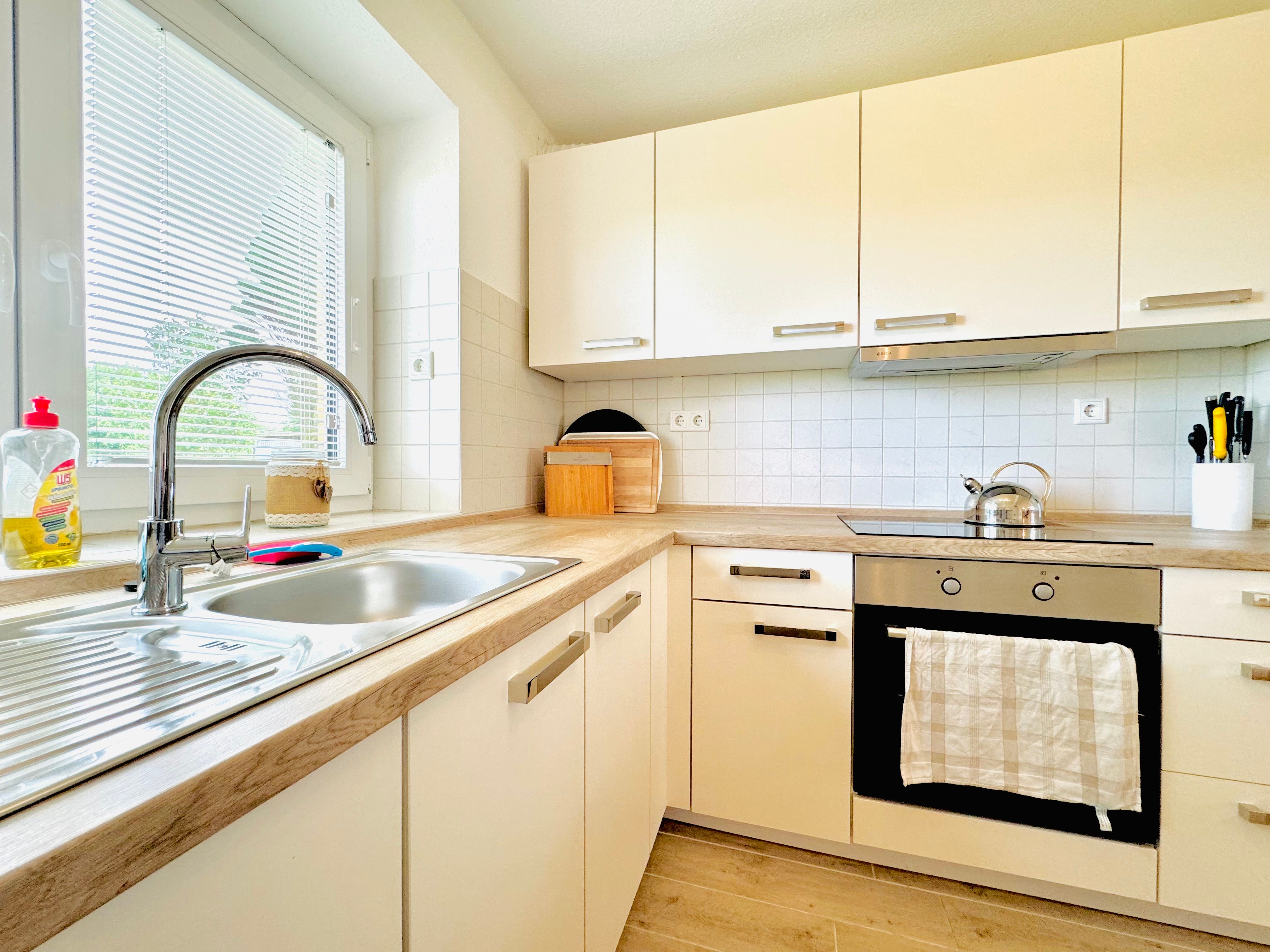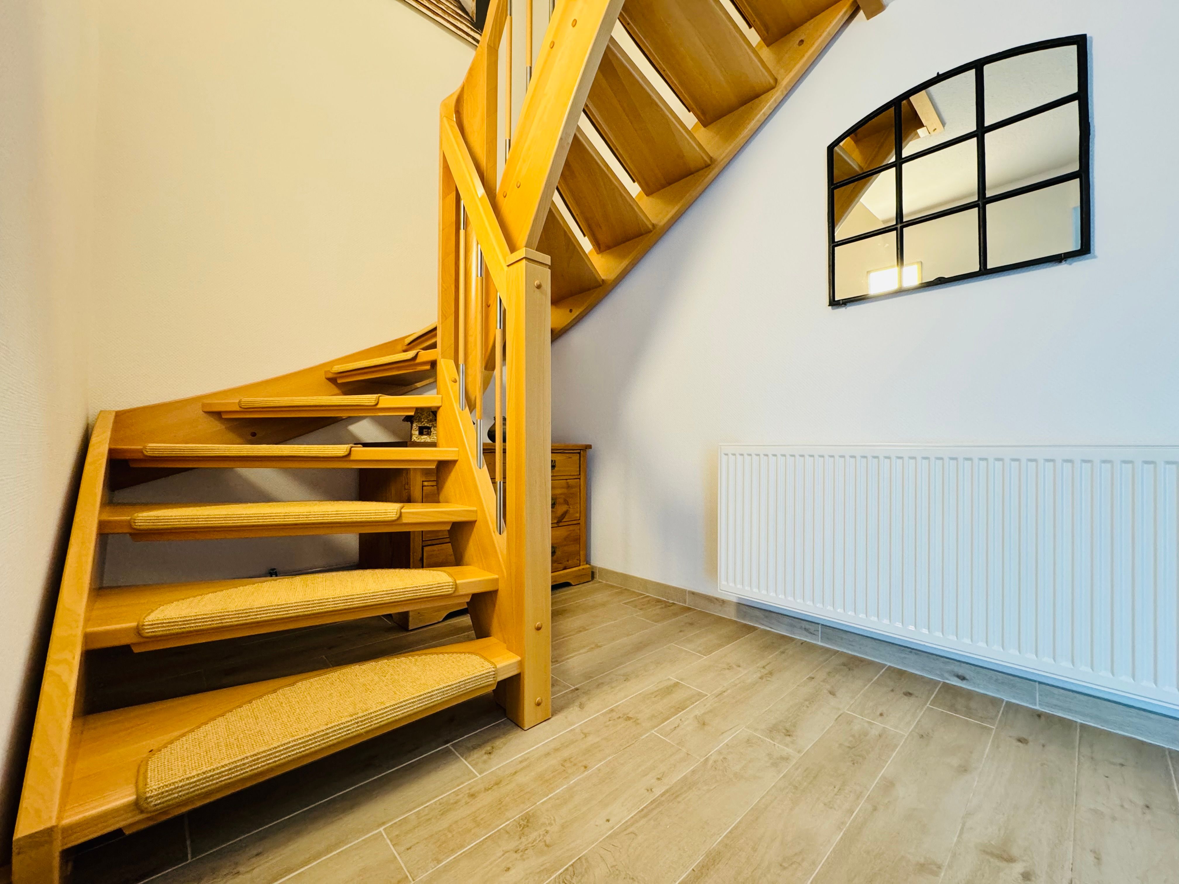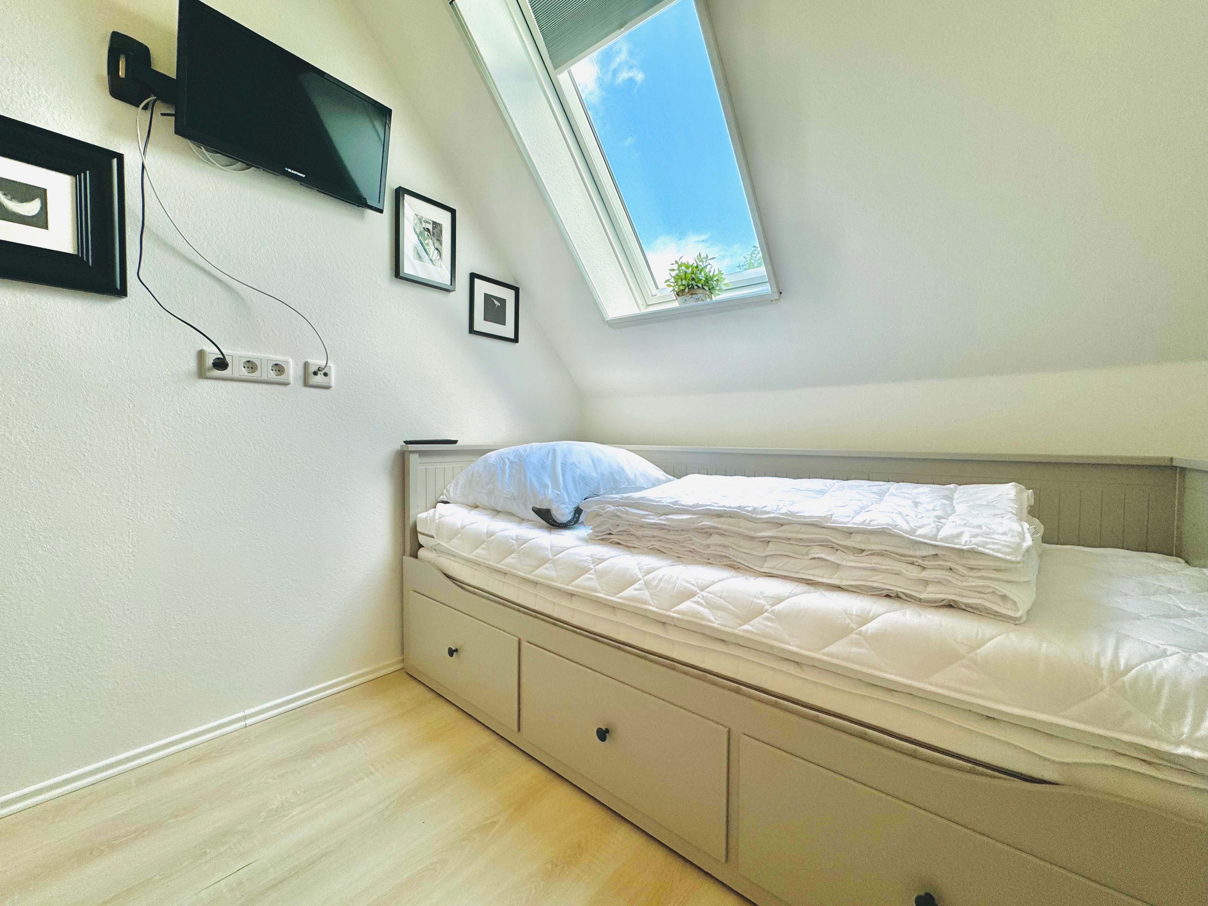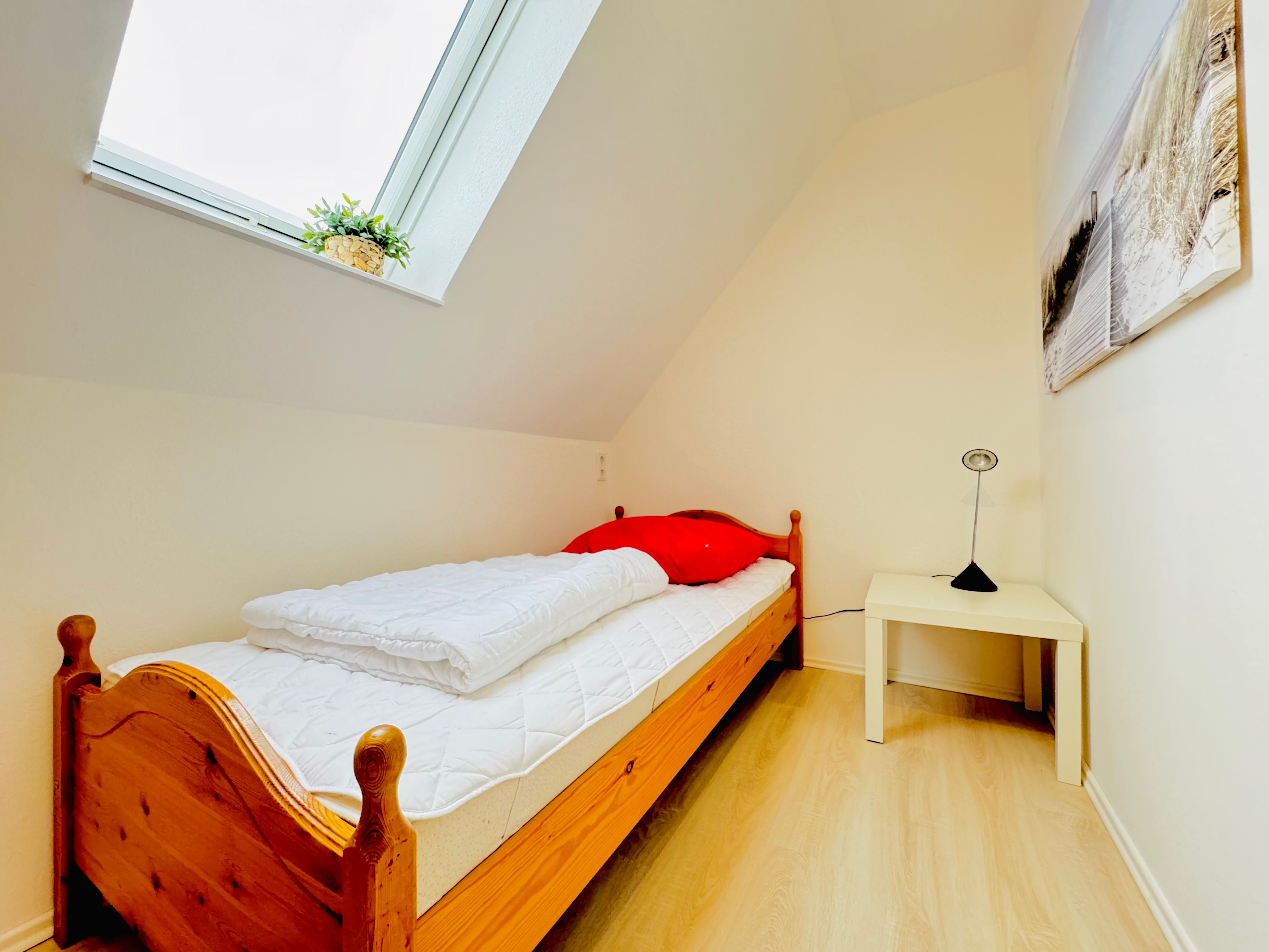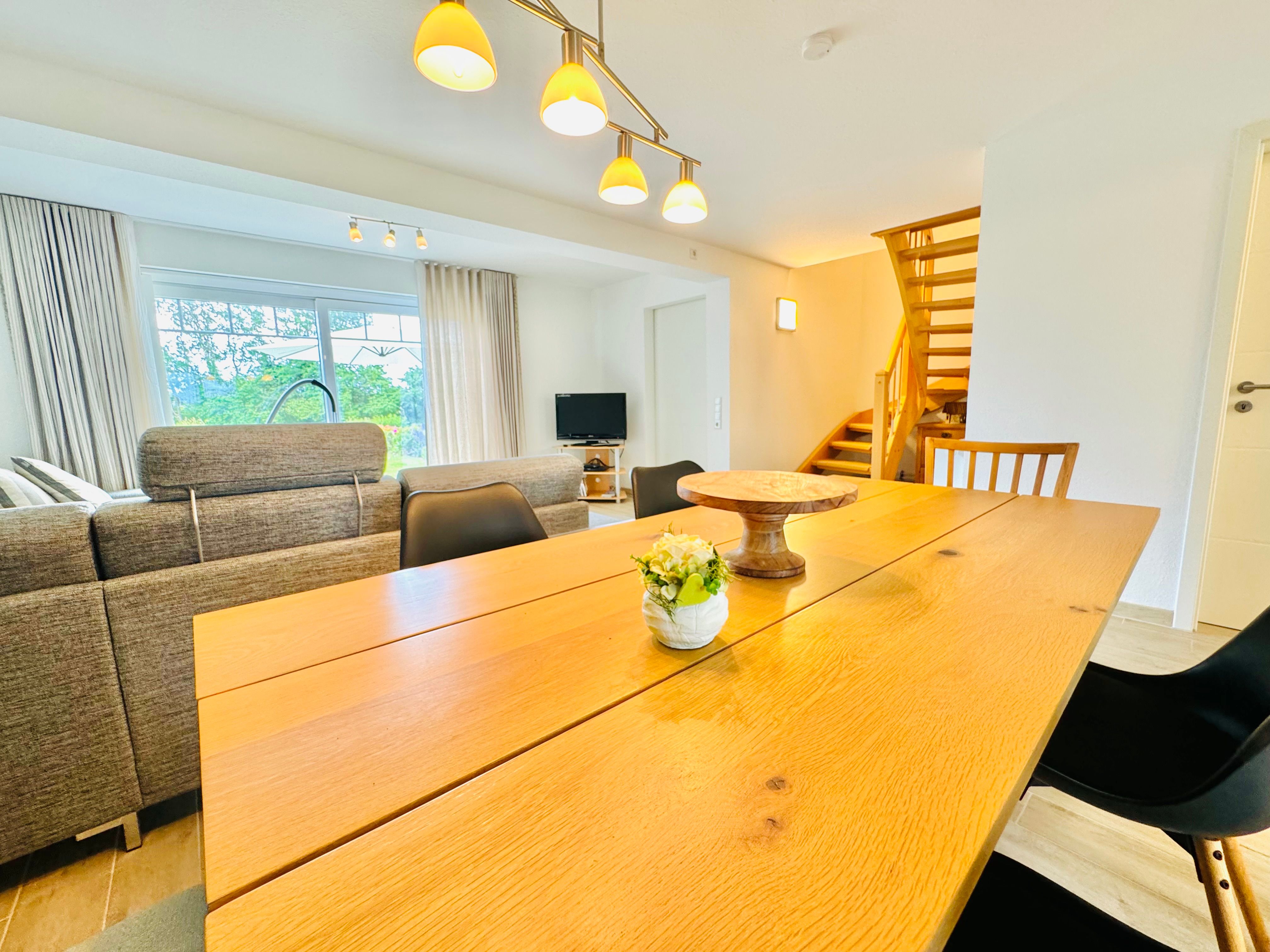 Ruhige Lage außerhalb, voll eingerichtet, kuscheliges Wohnzimmer. Die flächenmäßige Aufteilung der Schlafzimmer und Verstaumöglichkeiten für Kleidung ist teilweise unkonventionell.