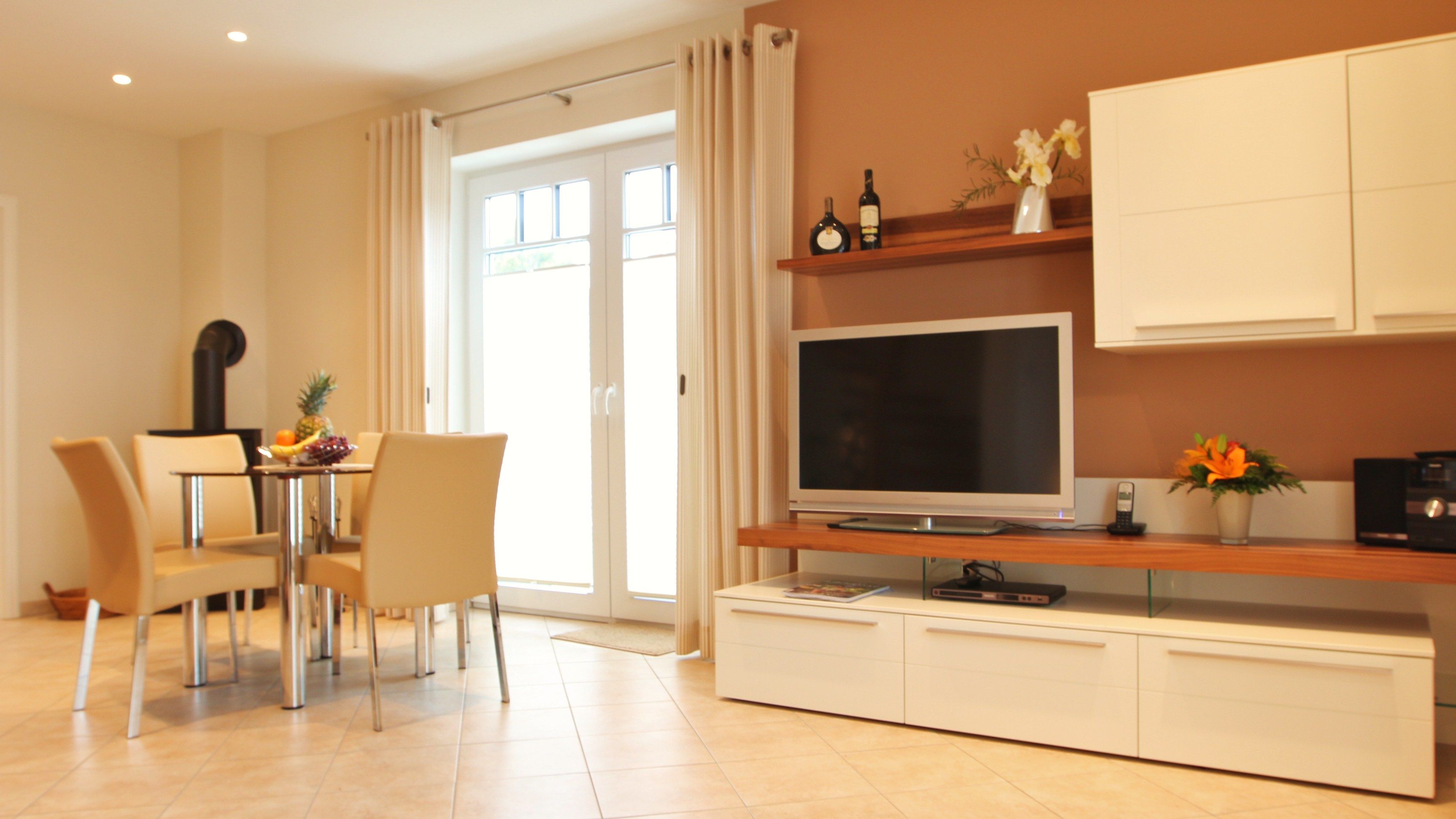 2 Flachbild-TV´s (SAT), DVD-Player, Micro-Stereo-Anlage mit CD und USB.