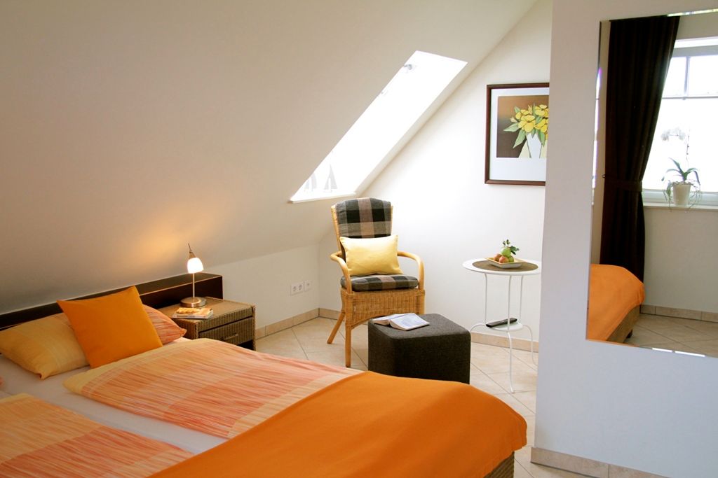 1 großzügiges Doppelschlafzimmer mit Flat-TV.