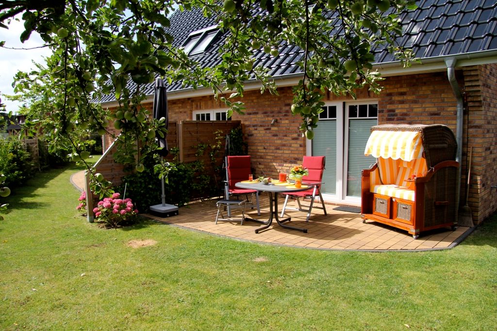 Schöner kleiner Garten mit genügend Platz für Tisch, Stühle, Strandkorb und Liegen. Tolle das im Gartenhäuschen die Fahrräder untergebracht werden können.