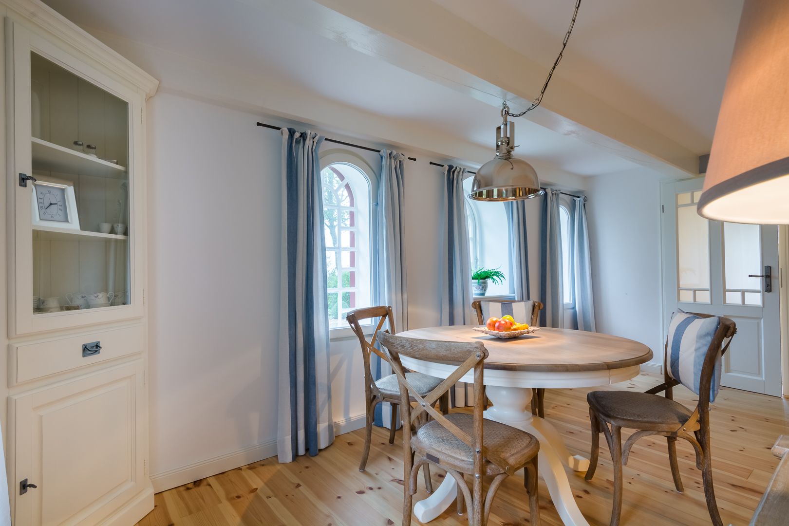 Die Wohnung liegt seht idyllisch und ruhig. Die einzigen Nachbarn waren ein Käutzchen und Rehe. Die Einrichtung passt gut zu dem Haus. Trotz der umfangreichen Ausstattung (z. B. Handmixer) bietet das Haus reichlich Stauraum für die eigenen Dinge (auch in der Küche).