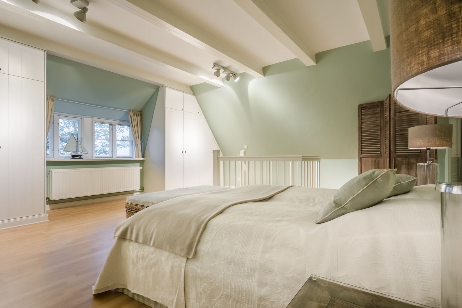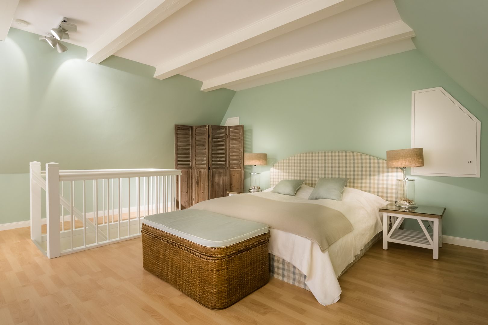 Das große Doppelschlafzimmer im OG ist auf Komfort ausgelegt: Zwei Betten (2 × 90 × 200 cm) mit verstellbaren Lattenrosten, Verdunkelungsvorhänge für ruhige Nächte und ausreichend Platz zum Ankommen und Abschalten.