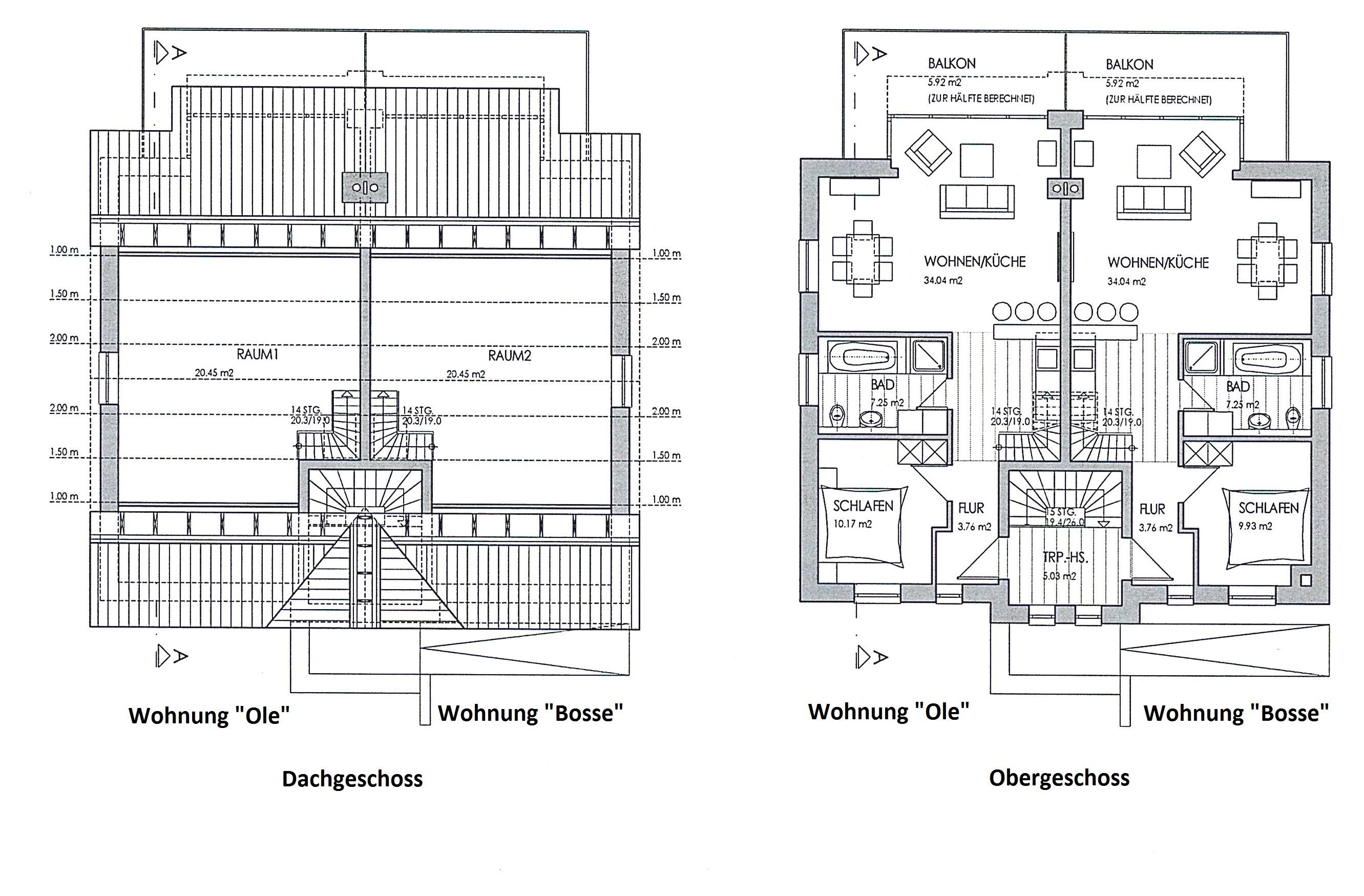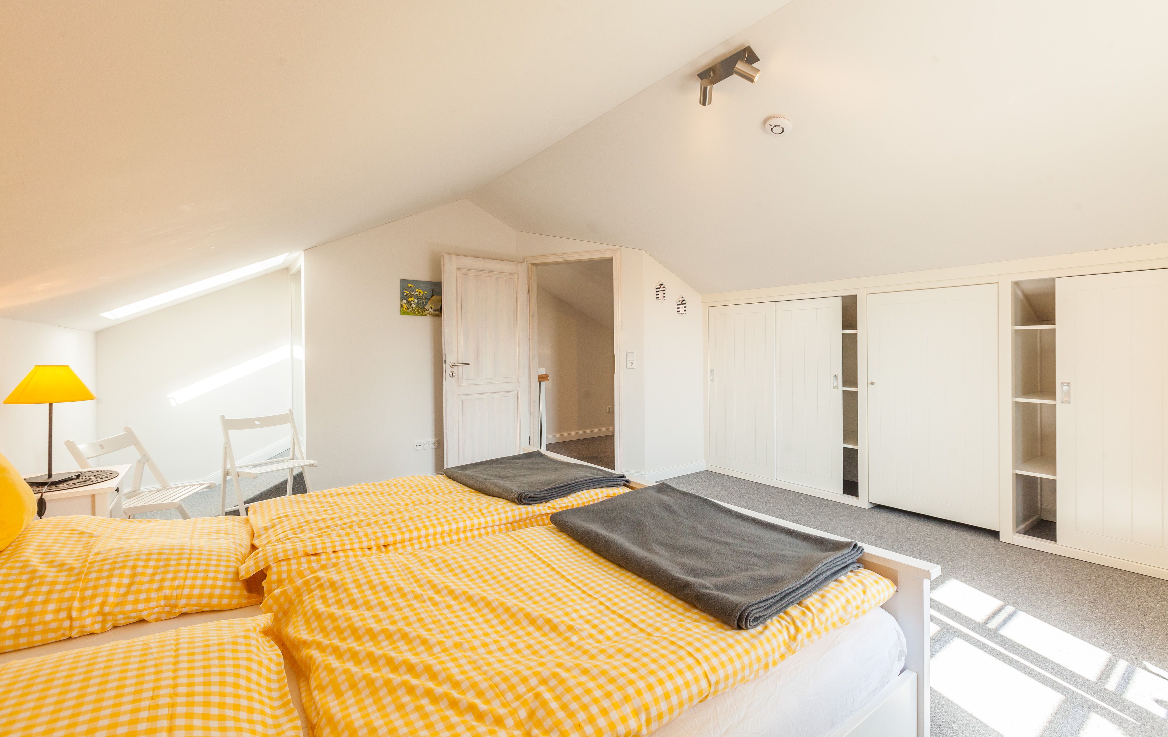 Ein Doppelschlafzimmer im OG (2x 80x200 cm) und eins im DG (2x 90x200 cm).