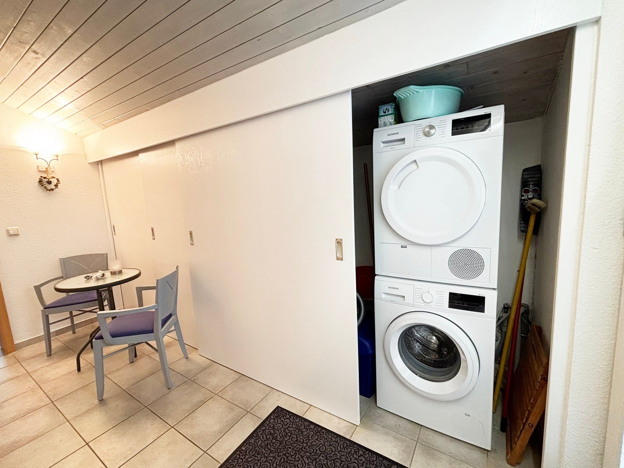 Sonstige Ausstattung: Waschmaschine (Eigennutzung), Trockner (Eigennutzung) Bügeleisen, Bügelbrett, Wäscheständer und Staubsauger.