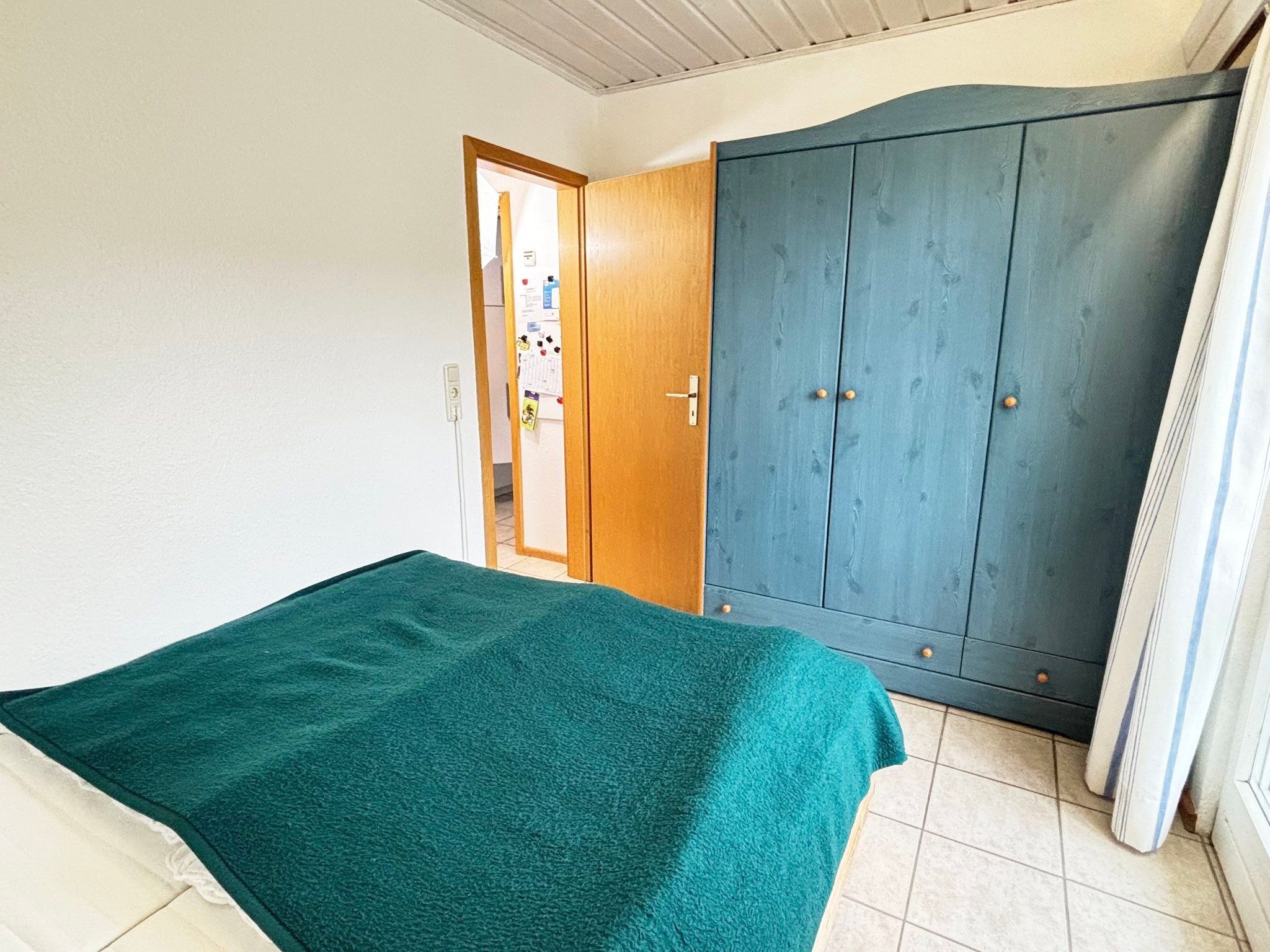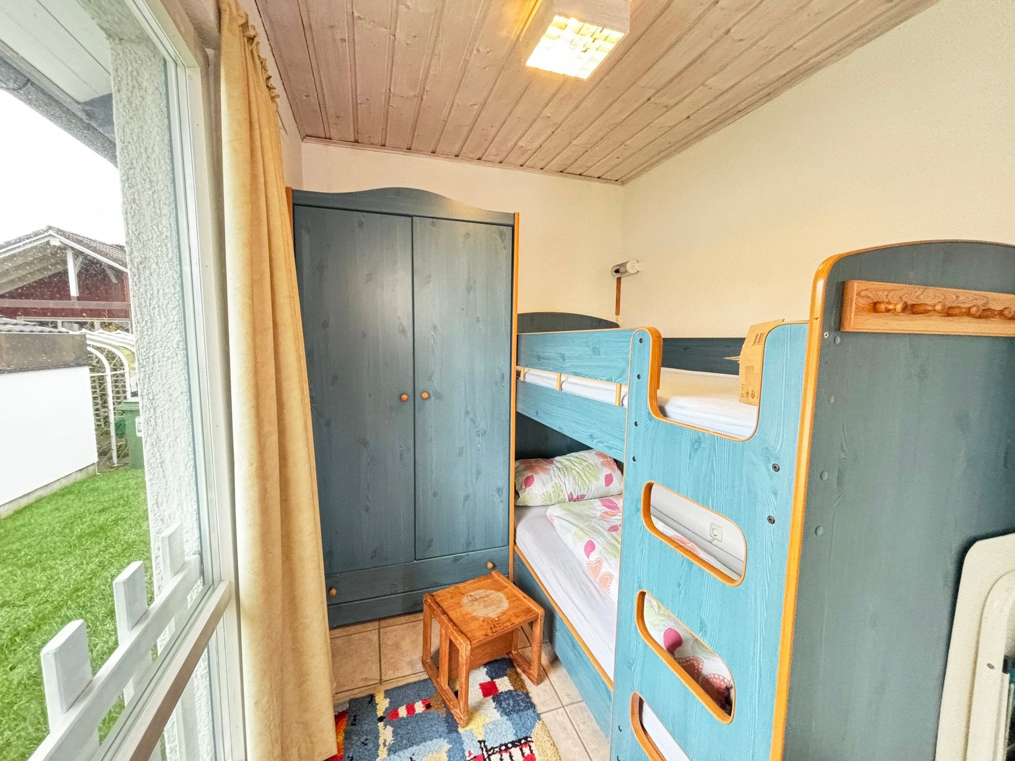 Schlafzimmer 3: Etagenbett (90x200cm), Kleiderschrank und Verdunklungsmöglichkeit.