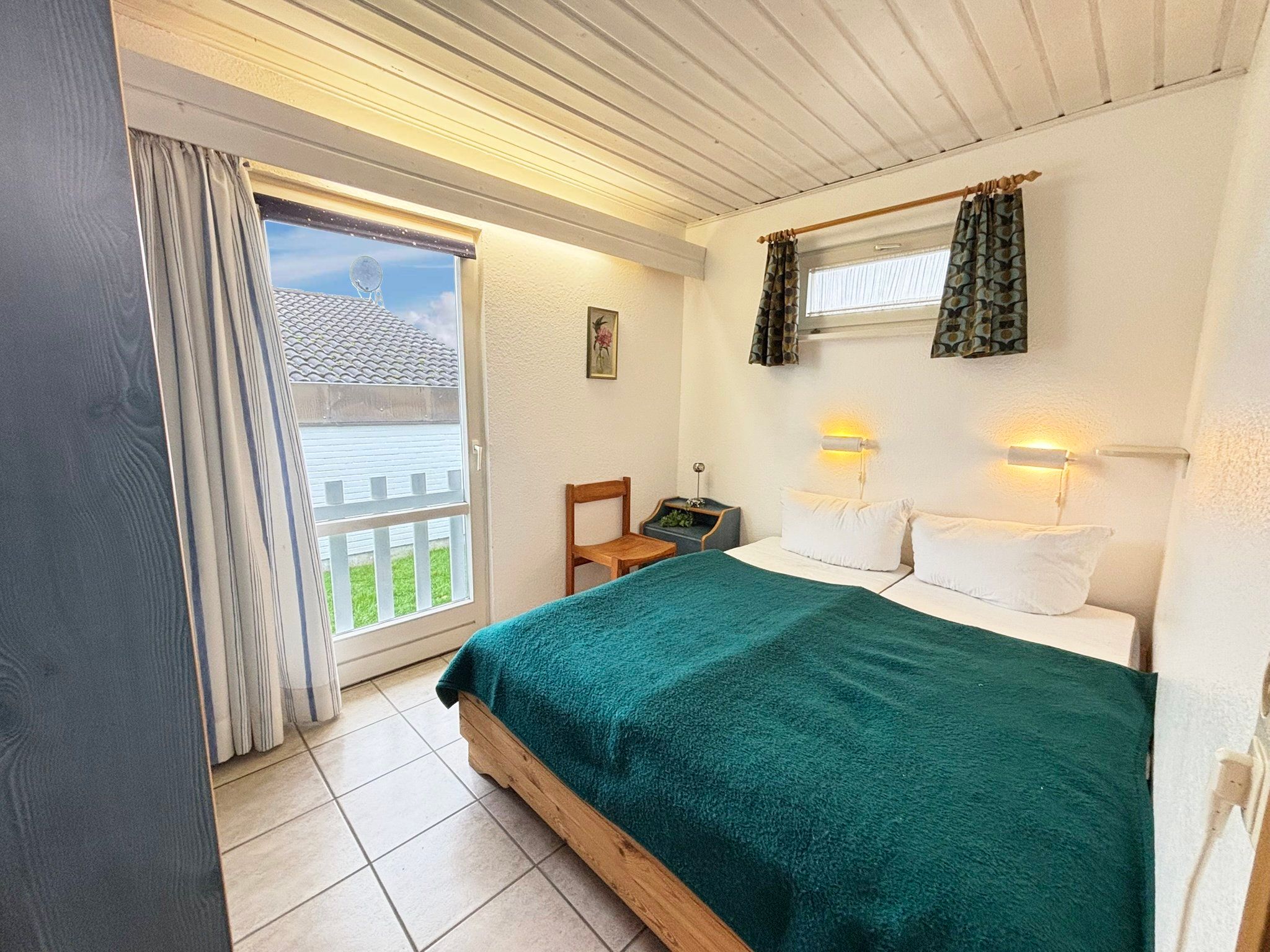 Schlafzimmer 2: Doppelbett (2x80x200 cm) mit getrennten Matratzen, offenes Fußende, Kleiderschrank und Verdunklungsmöglichkeit.