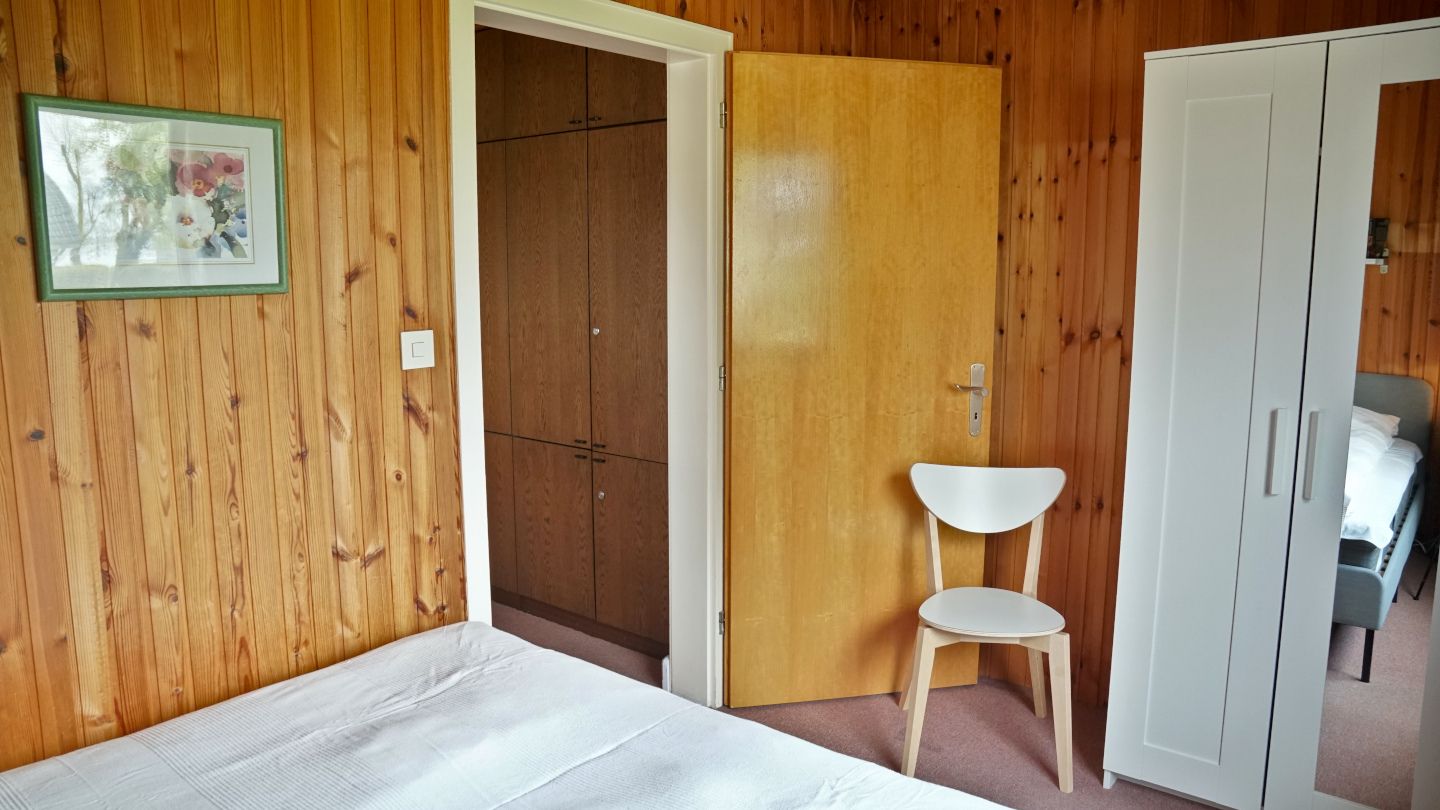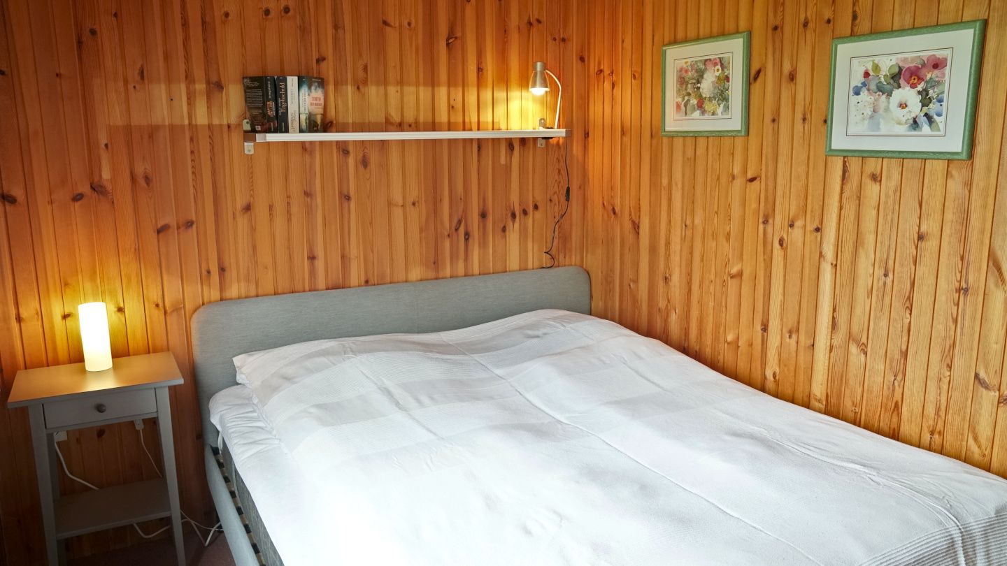1 separates Schlafzimmer mit kleinem Doppelbett (durchgehende Matratze)