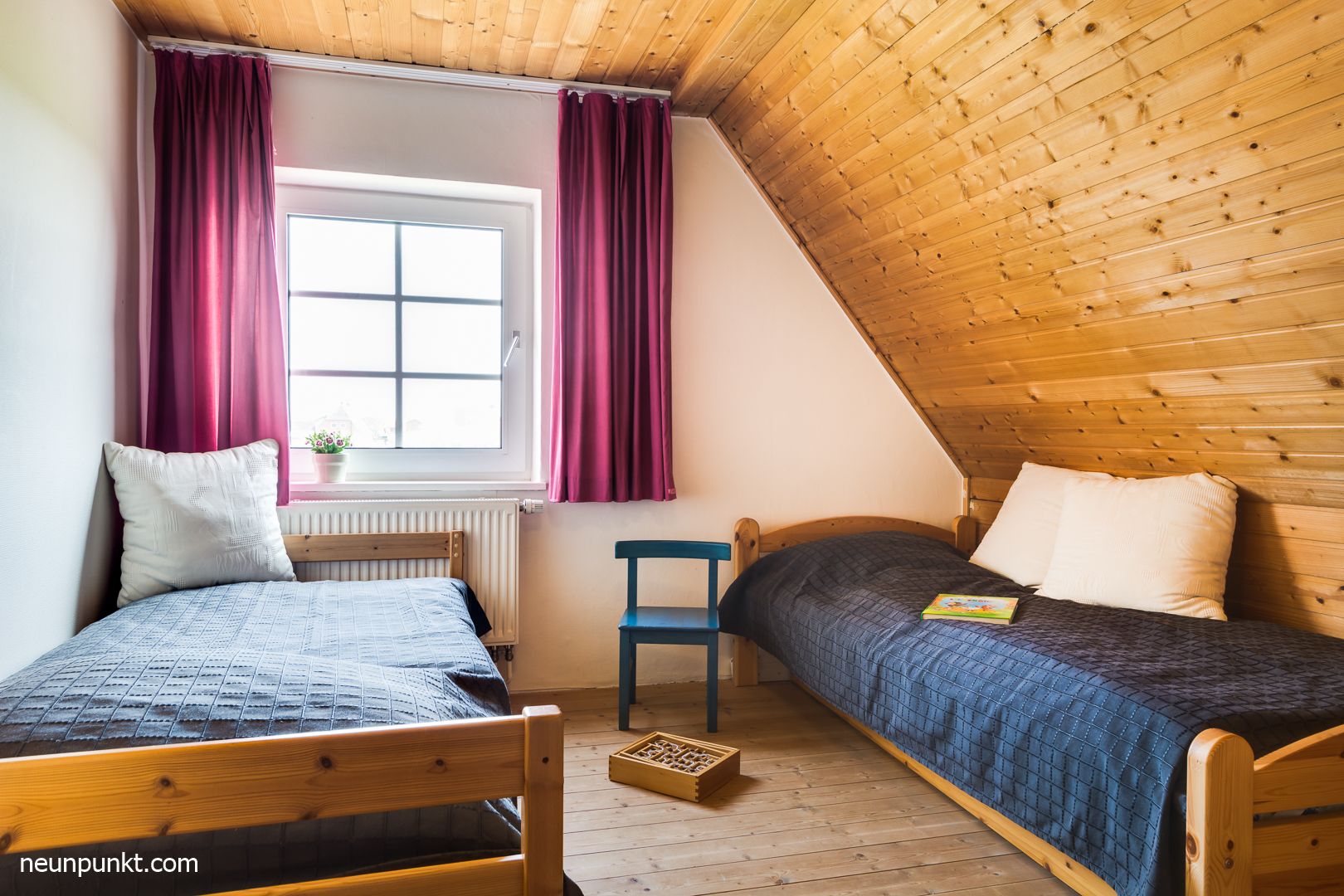 Im OG befinden sich 1 Doppelschlafzimmer (140x200 cm) und 1 Schlafzimmer mit 2 Einzelbetten (je 90x200 cm).