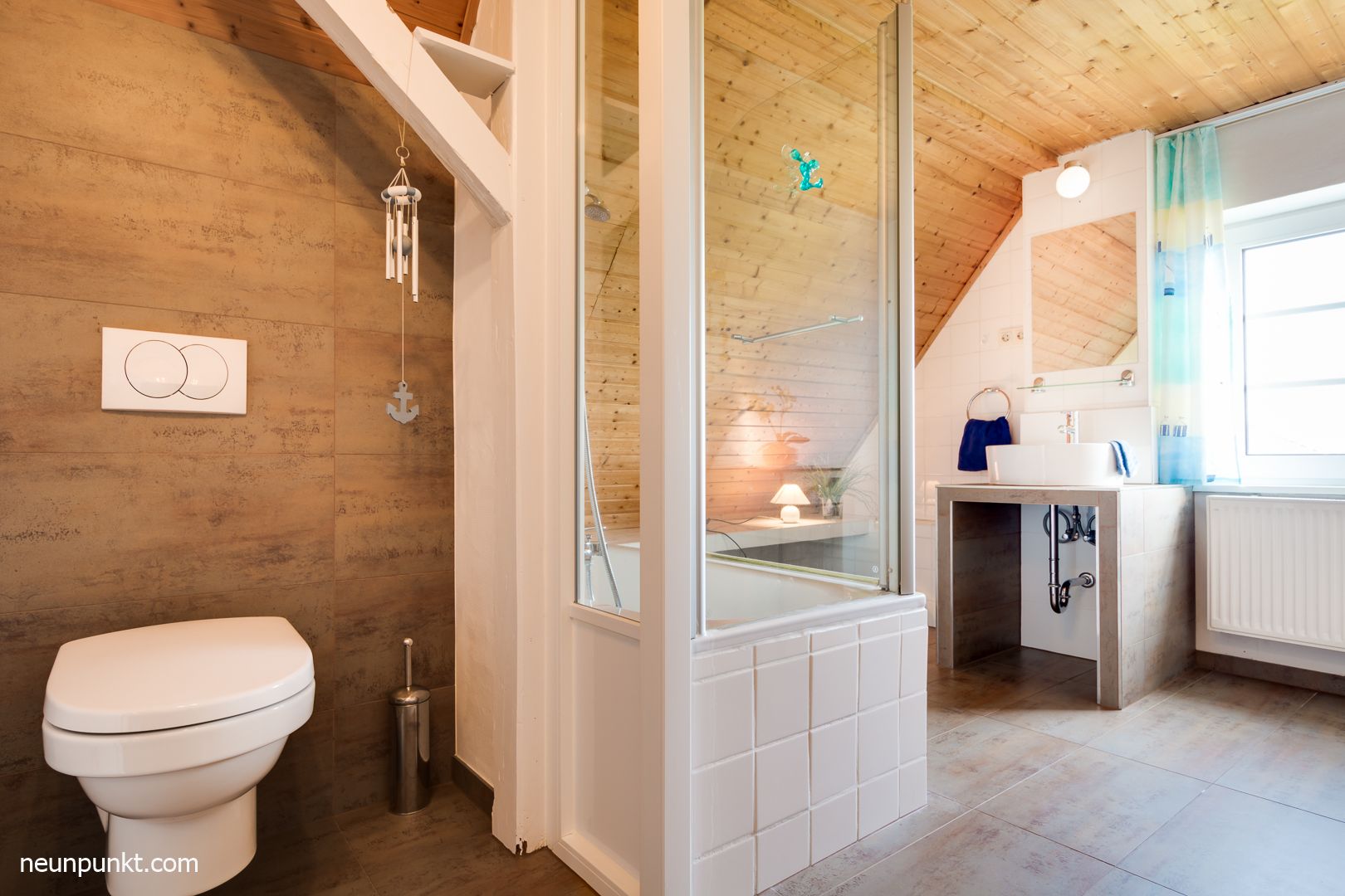 Badezimmer mit Wanne und zusätzliches Gäste-WC im Obergeschoss.