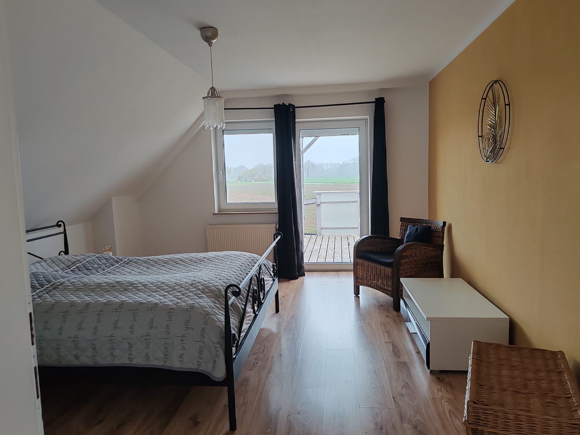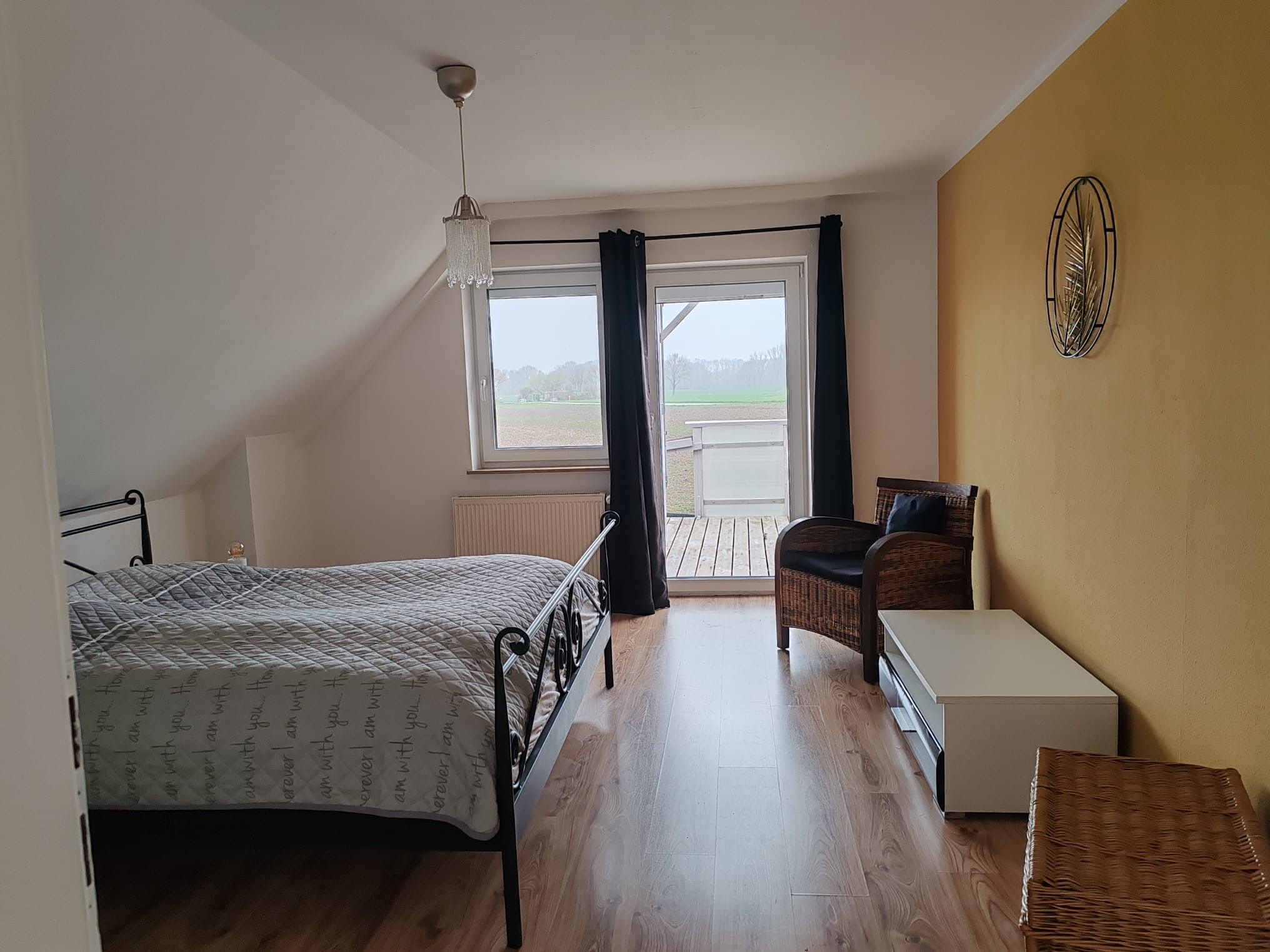 1 Schlafzimmer: Doppelbett (180x200cm), getrennte Matratzen, Kleiderschrank und Verdunklungsmöglichkeit vorhanden.