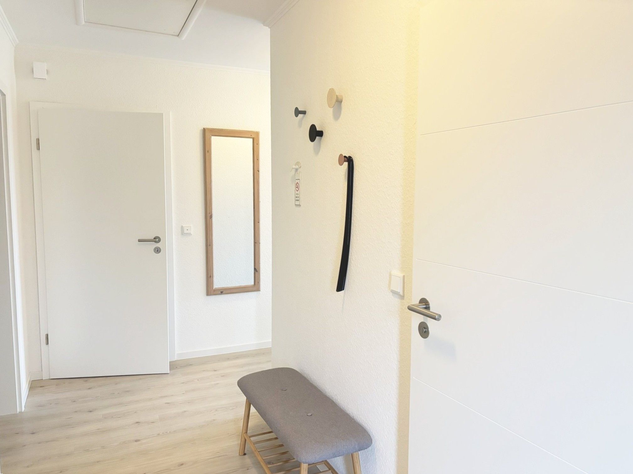 weitere Ausstattung: Ganzkörperspiegel, Garderobe, Wäscheständer, Staubsauger.