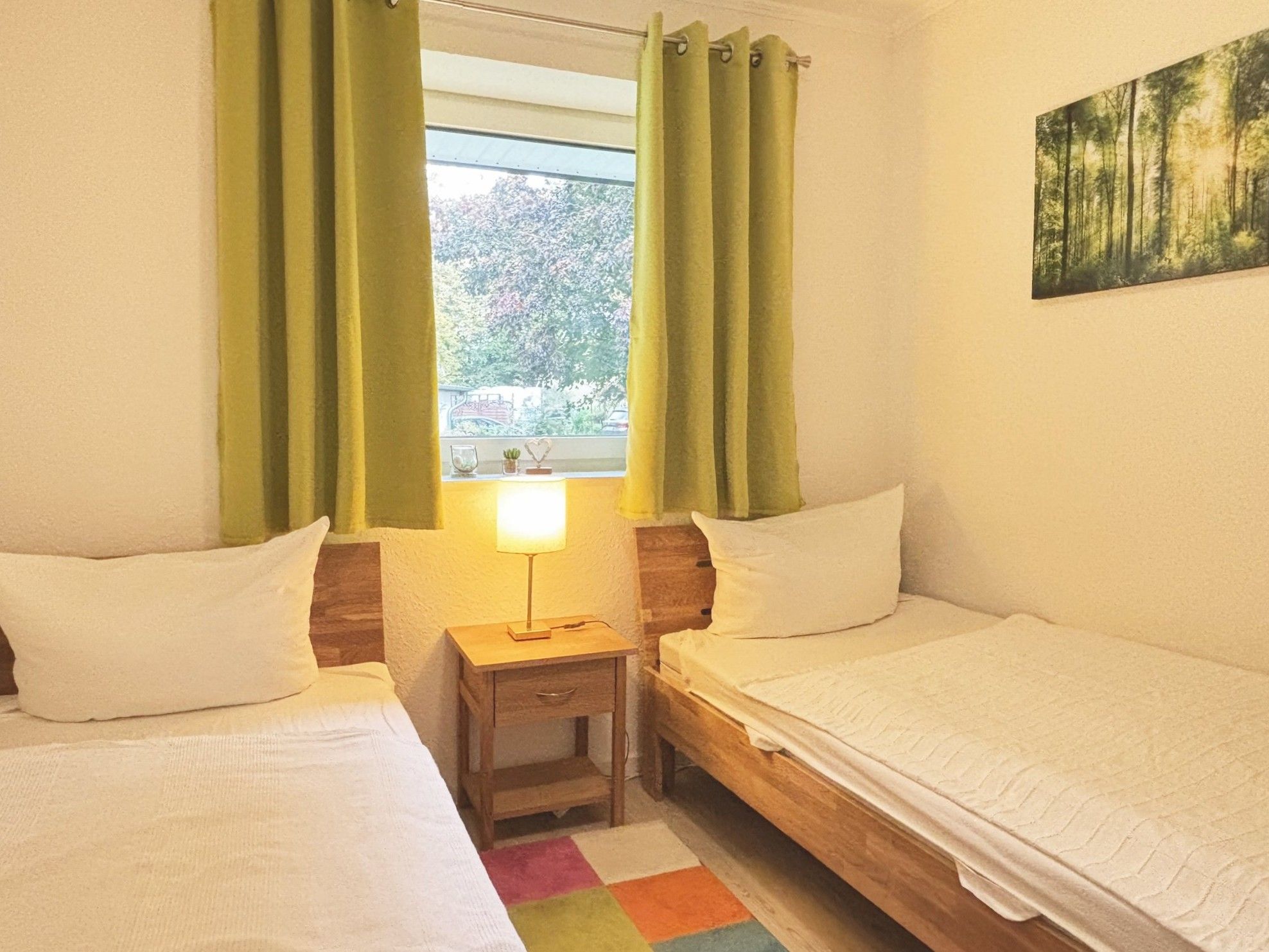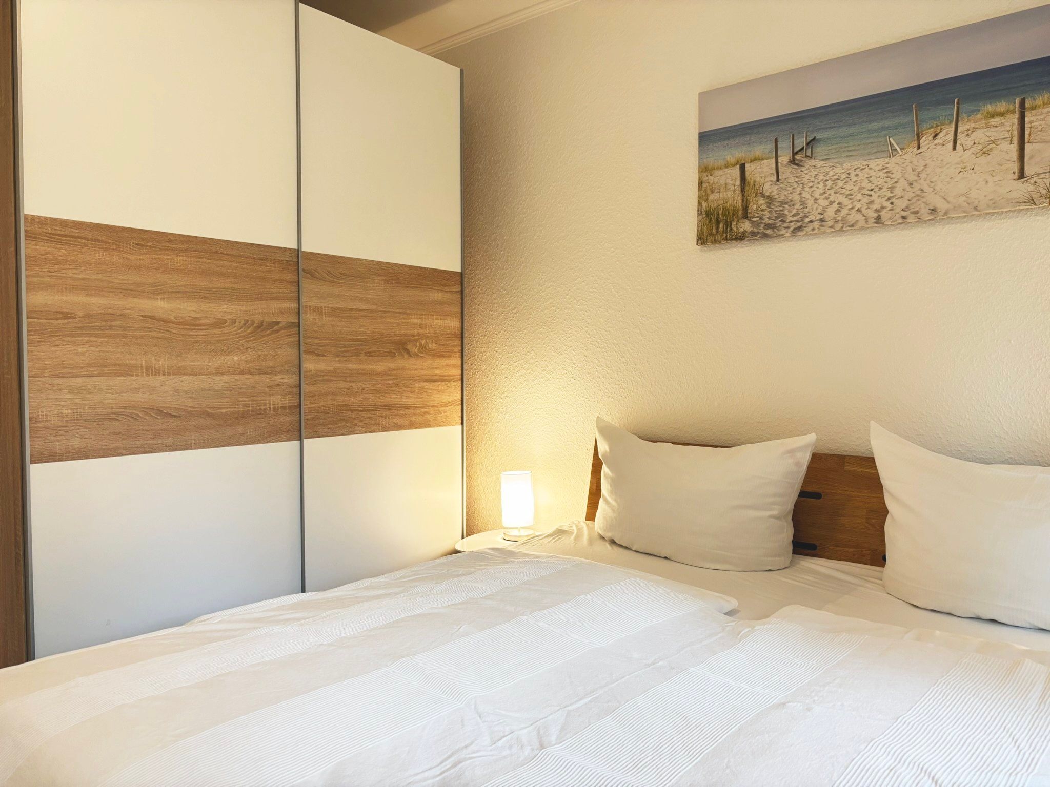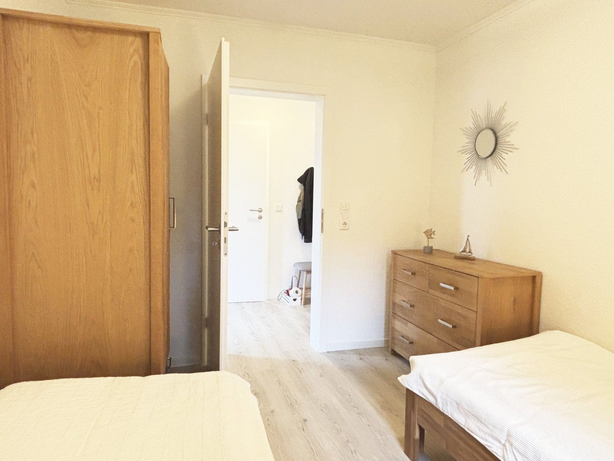 • Schlafzimmer 2: 2 Einzelbetten (90x200cm - offenes Fußende; Kleiderschrank + Kommode und Verdunklungsmöglichkeit