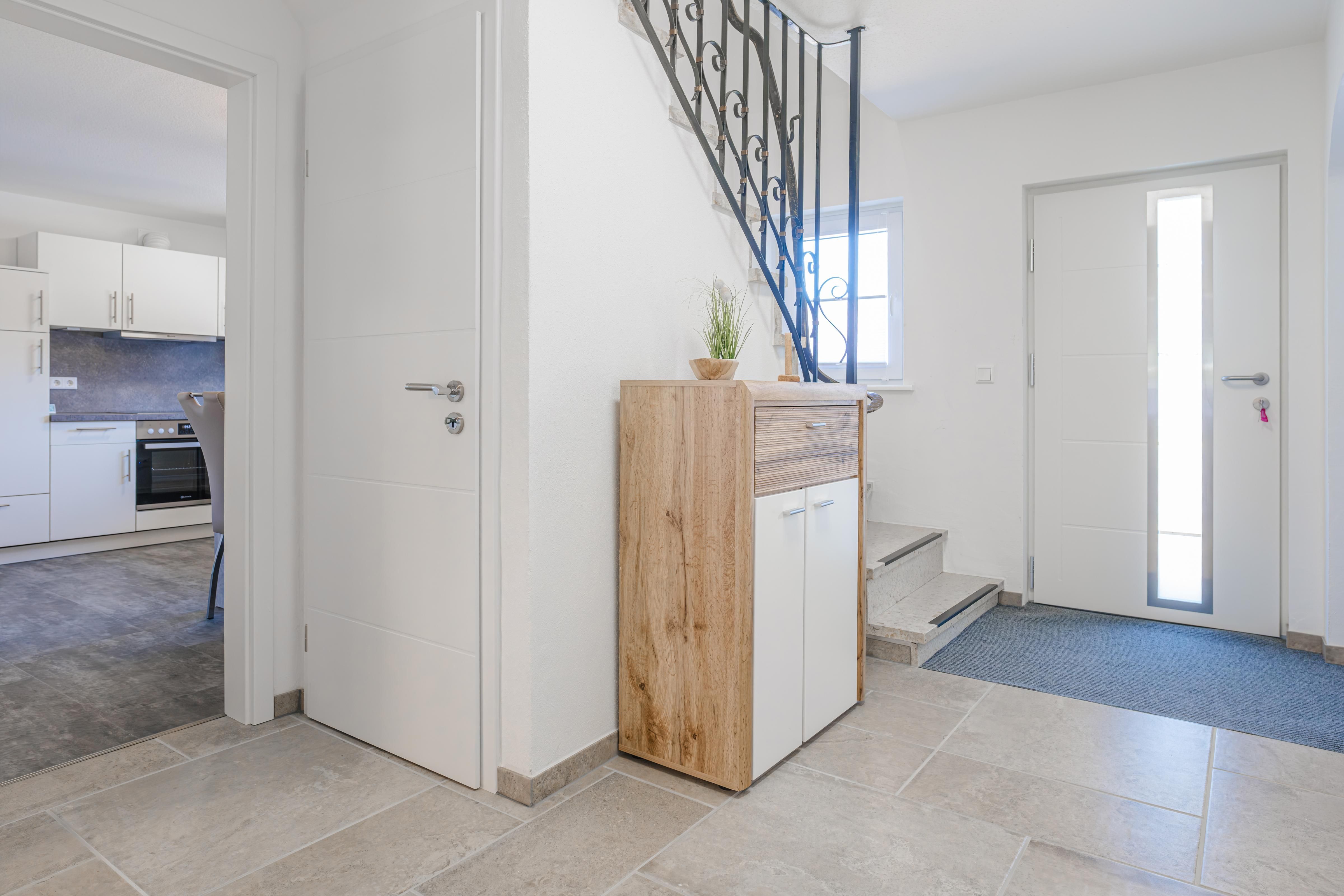 sonstige Ausstattung: Bügeleisen, Staubsauger, Wäscheständer Fußbodenheizung im Erdgeschoss und Sichtschutz an allen Fenster.