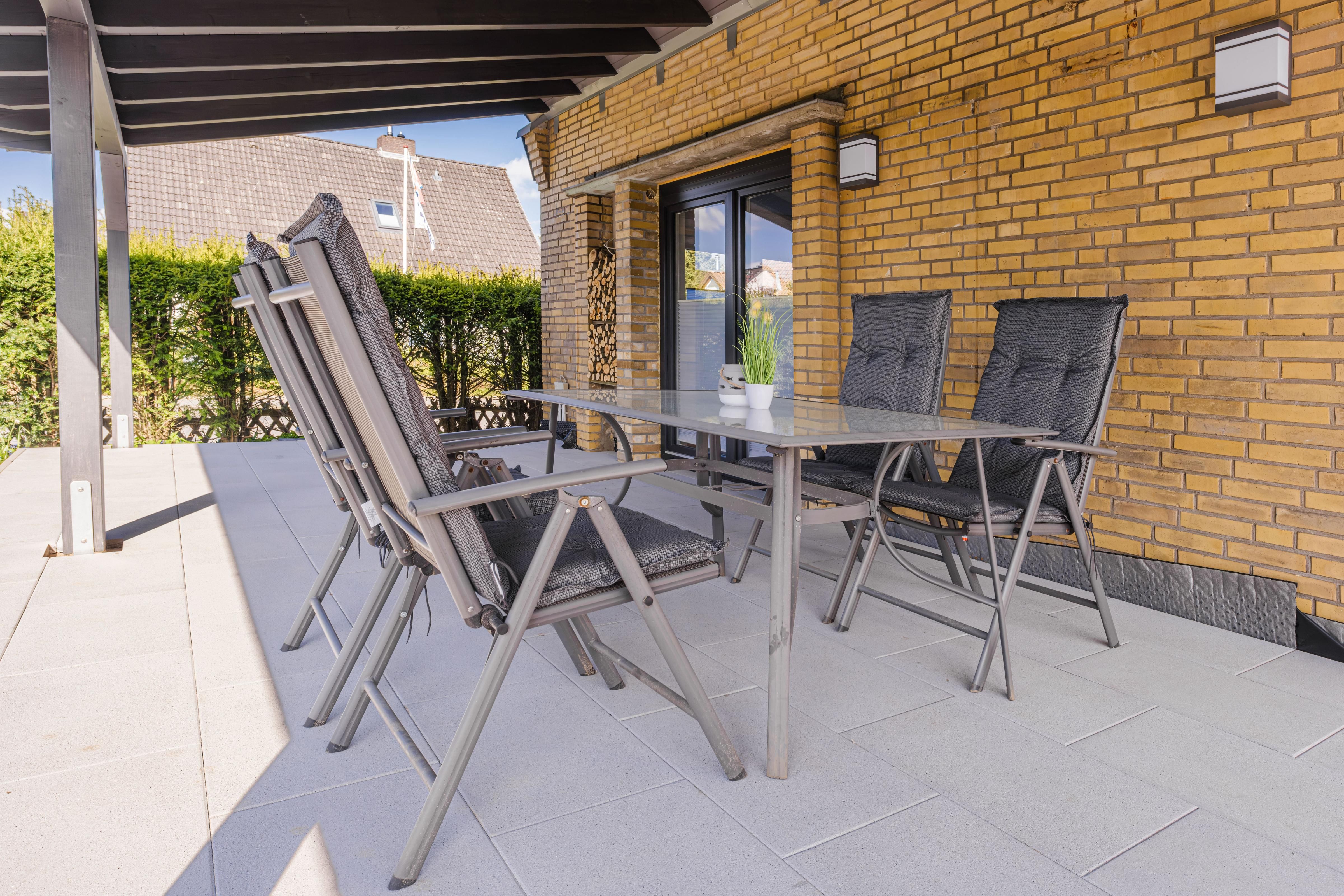 Außenbereich: Garten zur Eigennutzung, Liegewiese, 2 Sonnenliegen, Gartenmöbel (Tisch+ 6 Stühle), Kohlegrill.