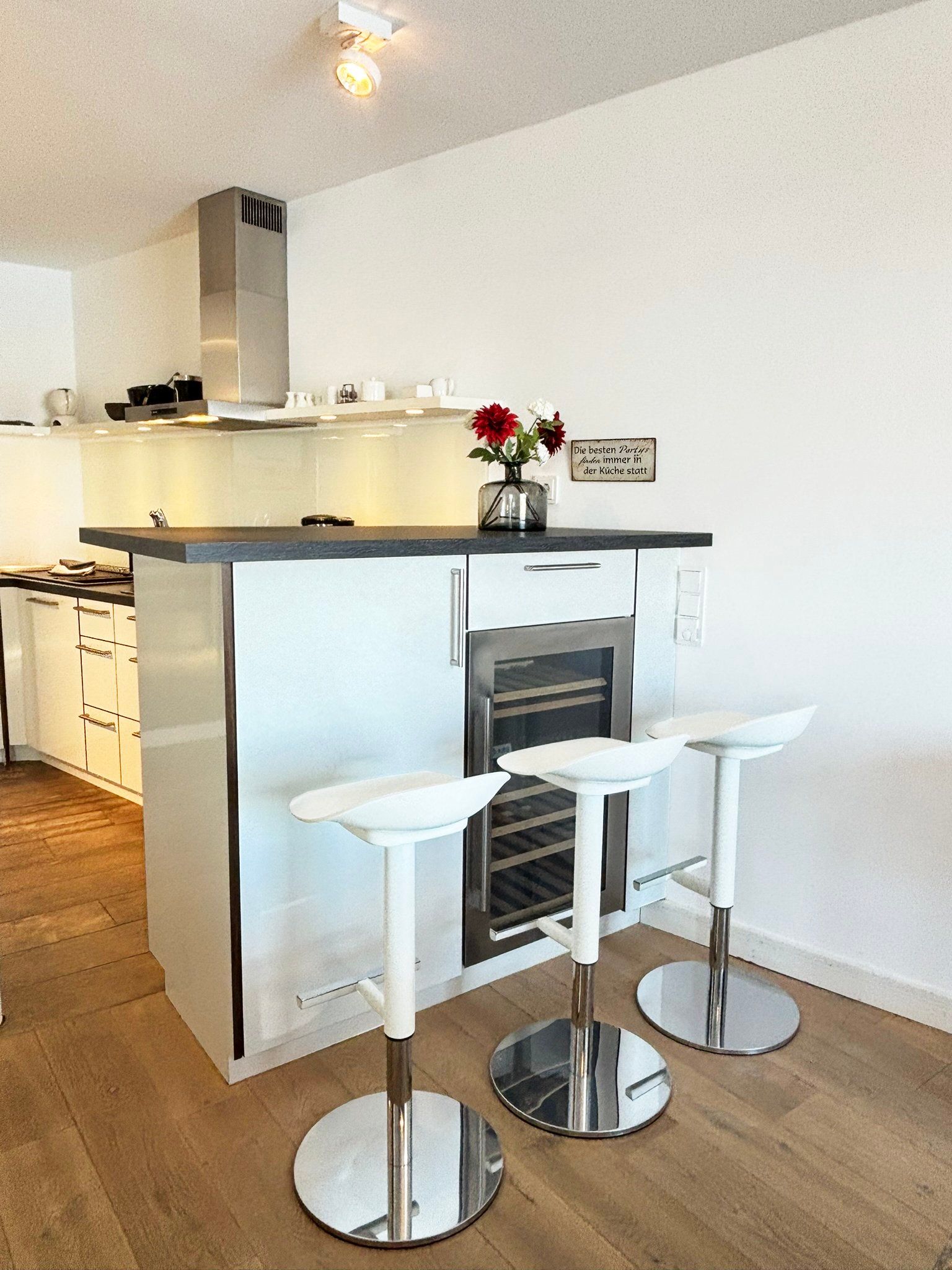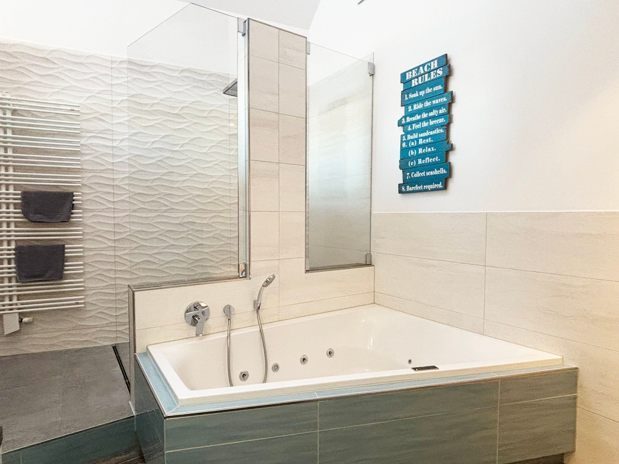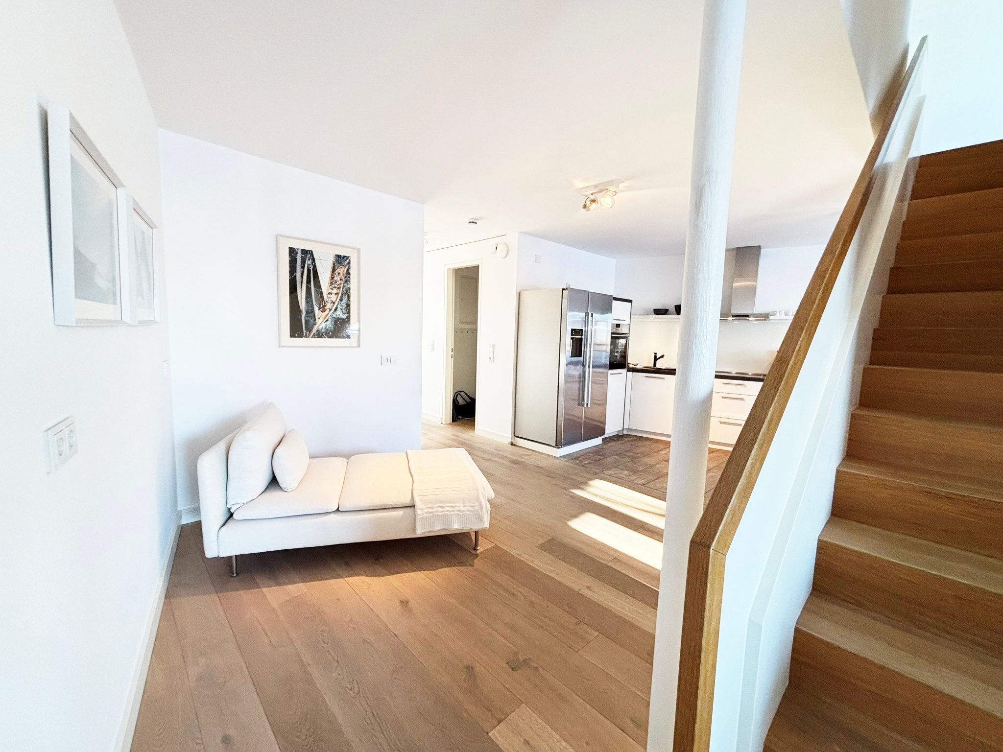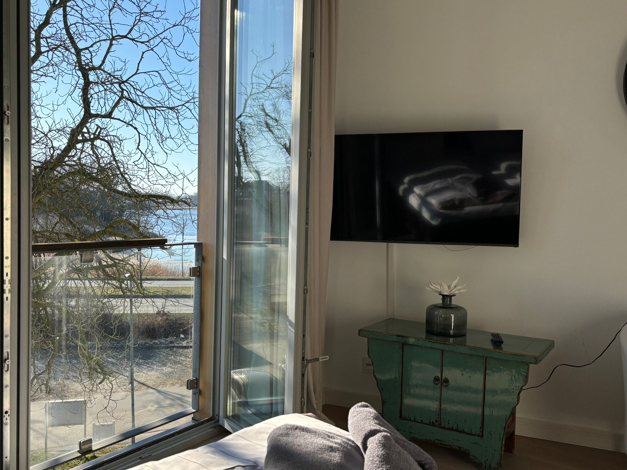 Eine sehr schöne Wohnung mit Blick auf die Schleibrücke, einem wunderschönen großen Schlafzimmer mit großer Fensterfront und Blick vom Bett aus auf die Schlei, ein großes Bad mit Sauna, ebenerdiger Dusche, Whirlpoolwanne und beheizter Toilette (was wir jetzt nicht bräuchten). Alles top, jedoch läuft die Dusche bei der austretenden Wassermenge nicht so gut ab und die Silikonfugen müssten auch mal wieder erneuert werden. Ansonsten alles gemacklich sehr schön ausgestattet. Toll ist die Küche mit zusätzlichem Weinkühlschrank und einem richtig schönen massiven Holztisch im Wohnbereich. Der Balkon ist zu schmal, um mit 4 Personen dort sitzen zu können. Wir haben das große bodentiefe Fenster weit geöffnet und so konnten noch 2 im Innenraum direkt am Balkon sitzen. Im Gäste-Bad unten könnte man noch Handtuchhalter anbringen. Wir waren zu viert und dann weiß man unten nicht, wohin mit den Hand- und Badtüchern, wenn man das Gäste-Bad mit Dusche benutzt. Wir haben uns aber sehr sehr wohl gefühlt, daher 5 Sterne und würden die Wohnung immer wieder gerne buchen.