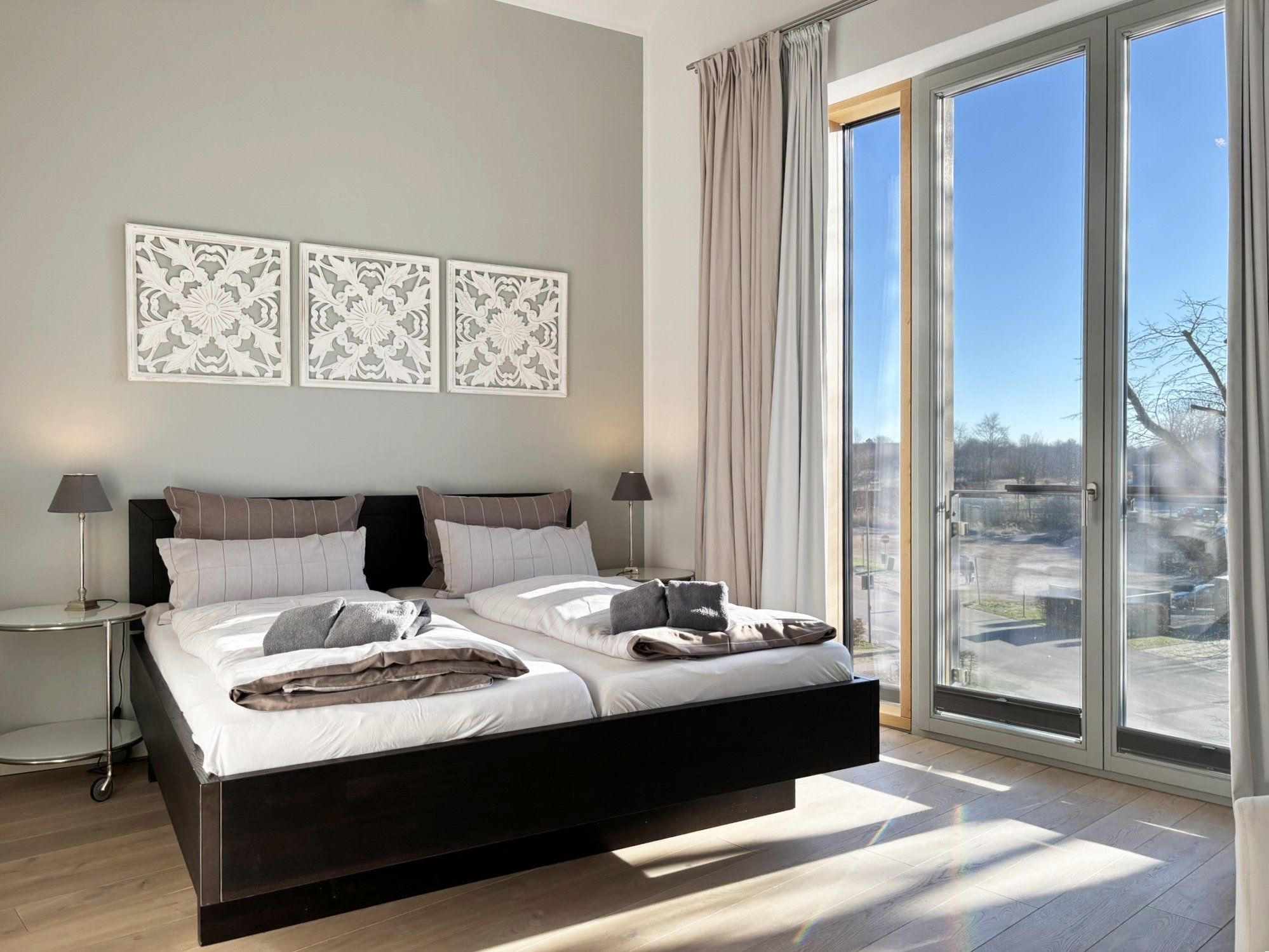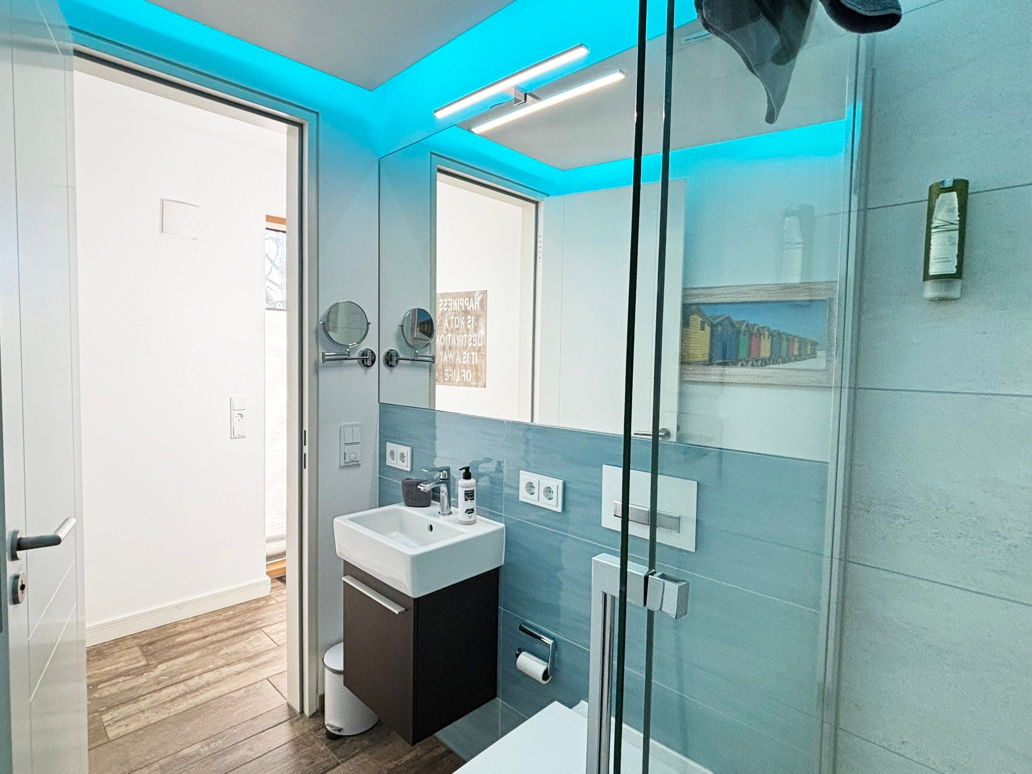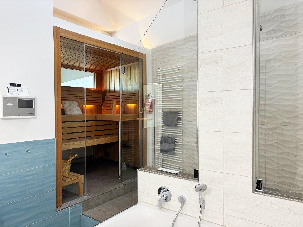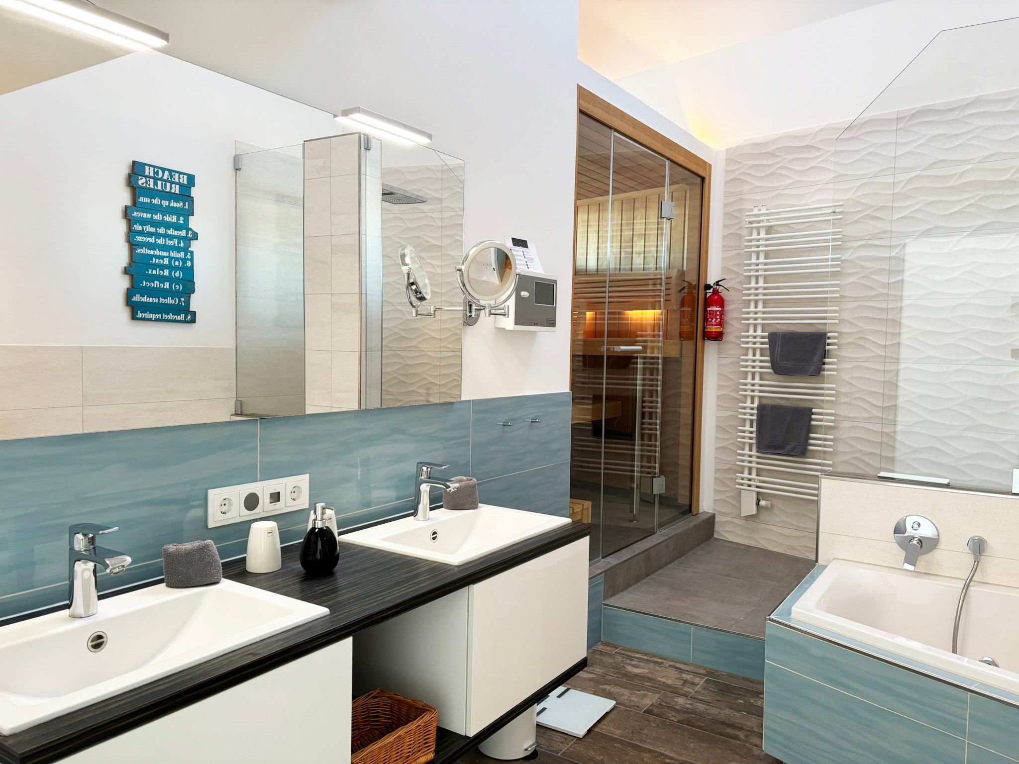 Eine sehr schöne Wohnung mit Blick auf die Schleibrücke, einem wunderschönen großen Schlafzimmer mit großer Fensterfront und Blick vom Bett aus auf die Schlei, ein großes Bad mit Sauna, ebenerdiger Dusche, Whirlpoolwanne und beheizter Toilette (was wir jetzt nicht bräuchten). Alles top, jedoch läuft die Dusche bei der austretenden Wassermenge nicht so gut ab und die Silikonfugen müssten auch mal wieder erneuert werden. Ansonsten alles gemacklich sehr schön ausgestattet. Toll ist die Küche mit zusätzlichem Weinkühlschrank und einem richtig schönen massiven Holztisch im Wohnbereich. Der Balkon ist zu schmal, um mit 4 Personen dort sitzen zu können. Wir haben das große bodentiefe Fenster weit geöffnet und so konnten noch 2 im Innenraum direkt am Balkon sitzen. Im Gäste-Bad unten könnte man noch Handtuchhalter anbringen. Wir waren zu viert und dann weiß man unten nicht, wohin mit den Hand- und Badtüchern, wenn man das Gäste-Bad mit Dusche benutzt. Wir haben uns aber sehr sehr wohl gefühlt, daher 5 Sterne und würden die Wohnung immer wieder gerne buchen.