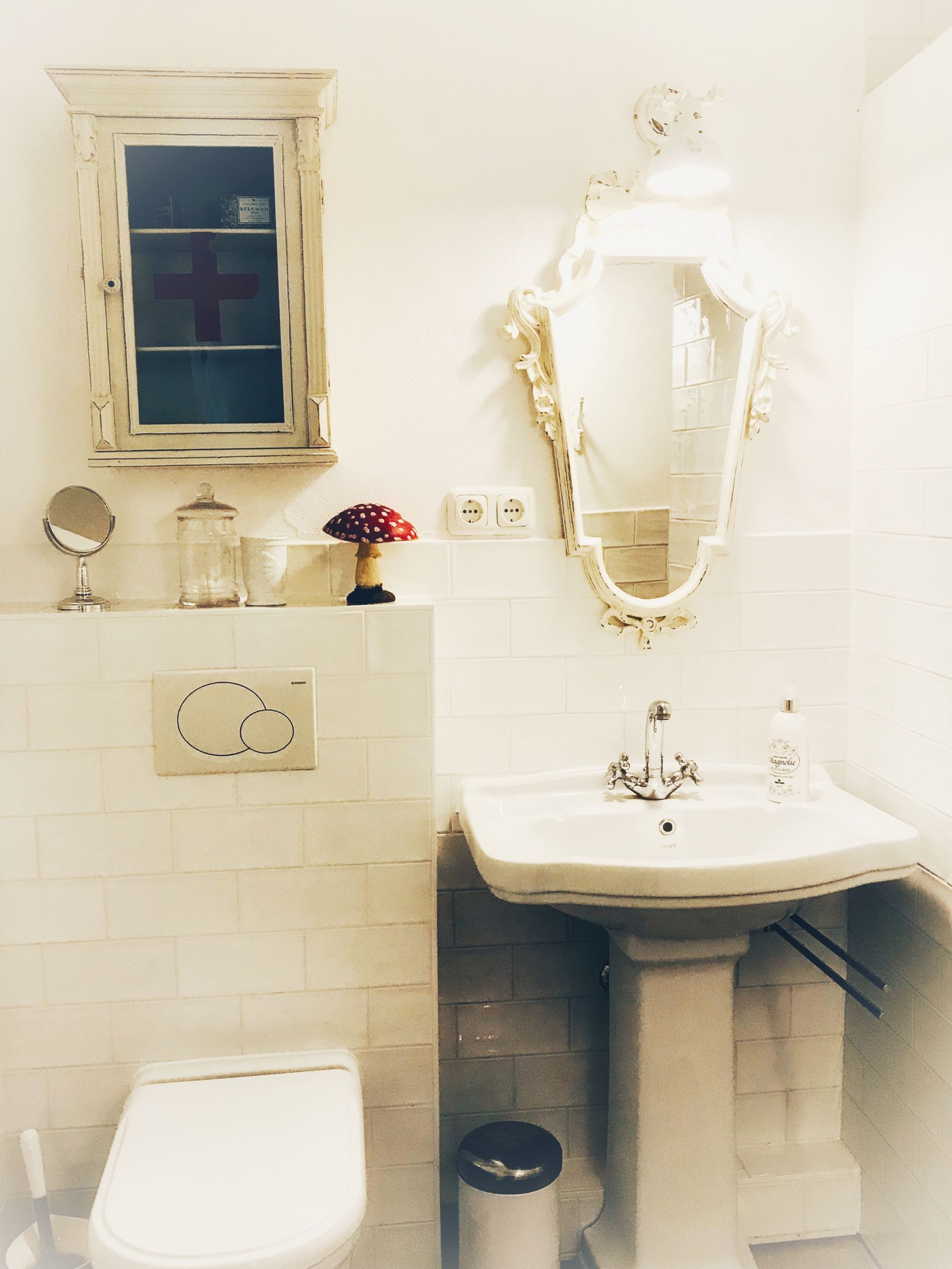 Zu guter Letzt: der Stauraum. So sehr ich die Dekorationen in diesem Haus mag, so wenig Stauraum gibt es - vor allem in der Küche. Die wundervollen Vorratsdosen aus alten Zeiten auf den Regalen will man nicht benutzen oder wegstellen. Der Kühlschrank ist ausreichend groß, aber ein maximal 10 cm breites und ca. 70 tiefes Schrankfach, in dem schon allerlei Teesorten, Salzpackungen, Folien und verschiedene Mülltüten verstaut sind ist echt nicht wenig, wenn man mal eine Packung Nudeln oder eine Dose Tomaten unterbringen will.