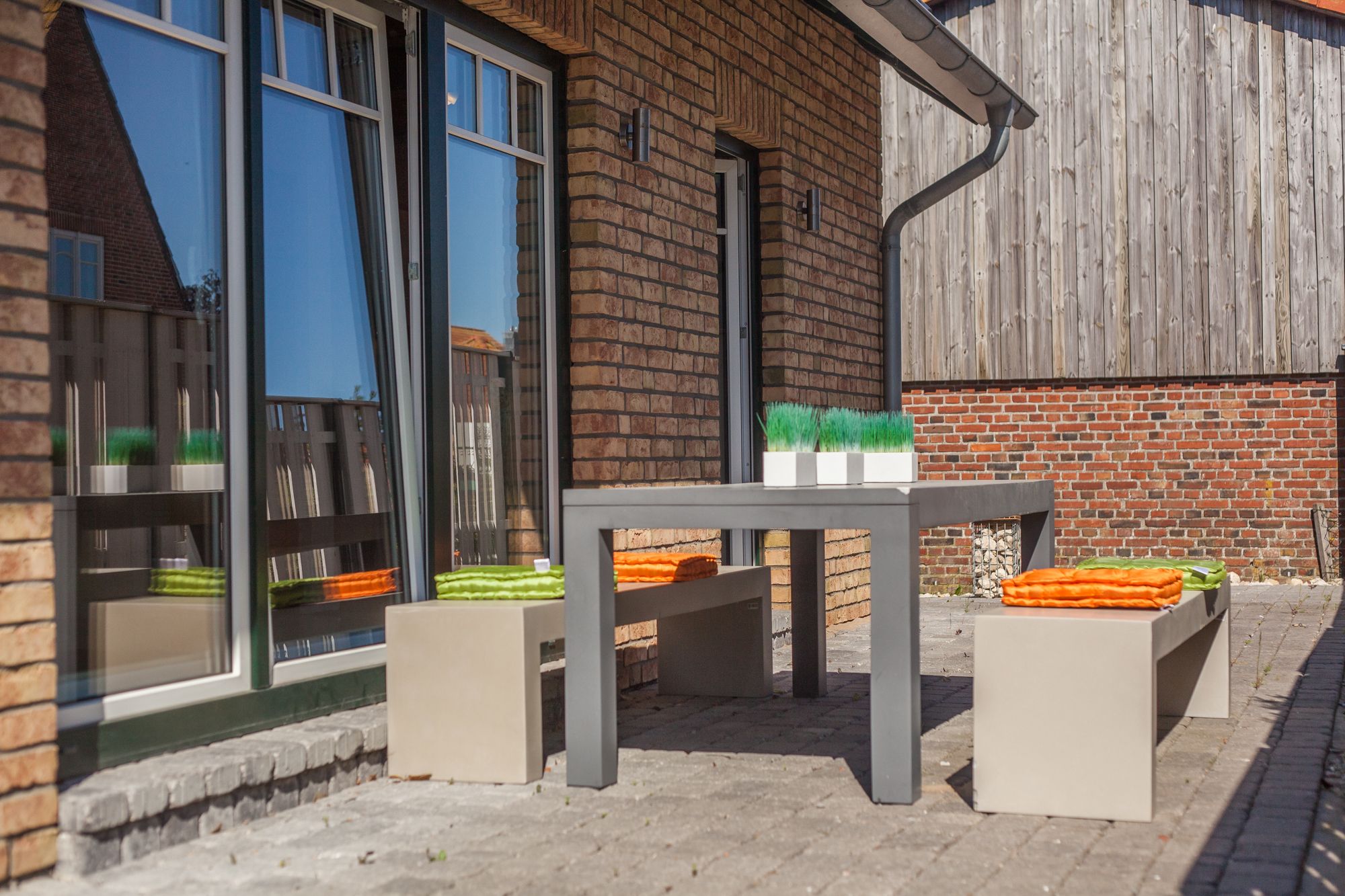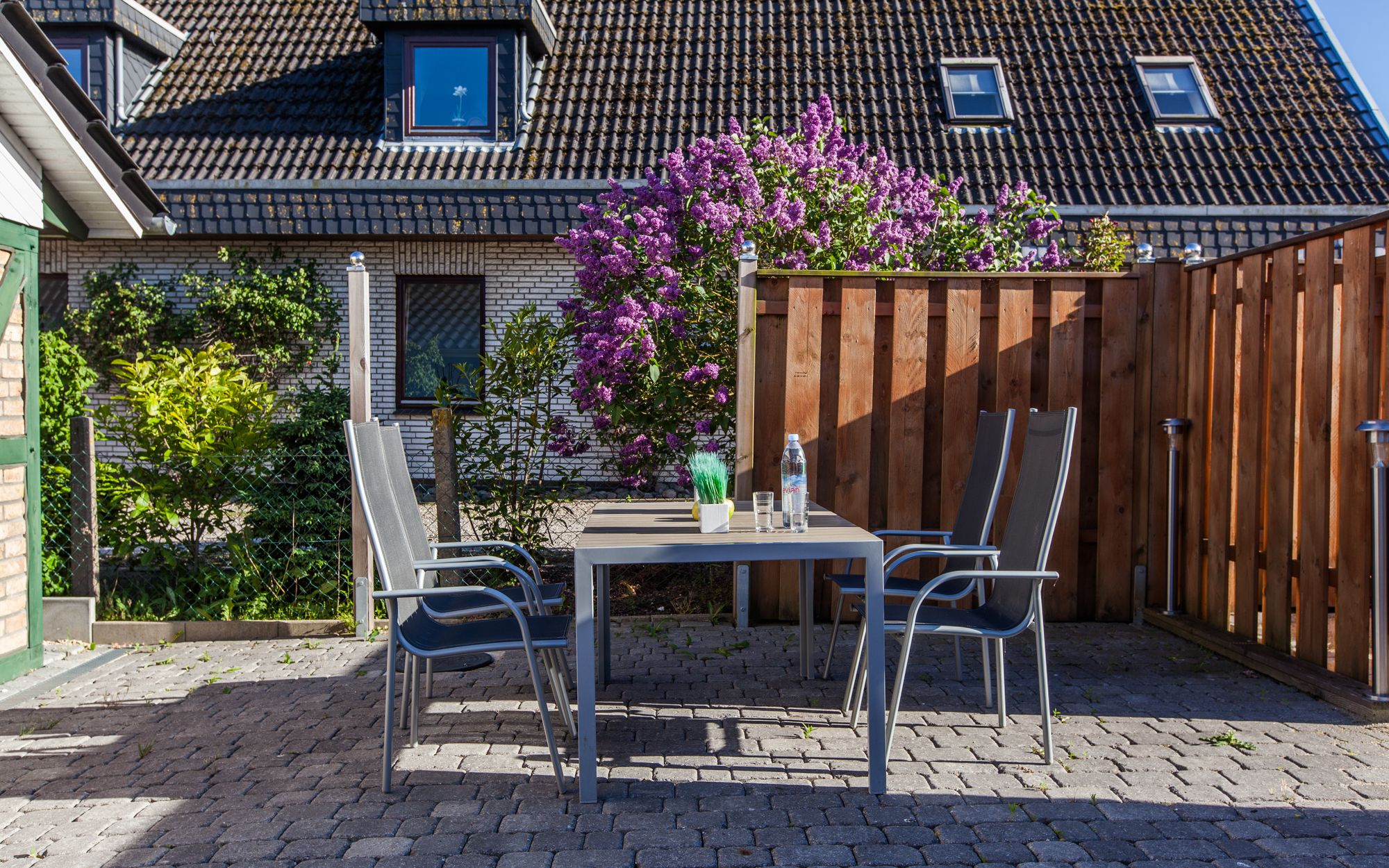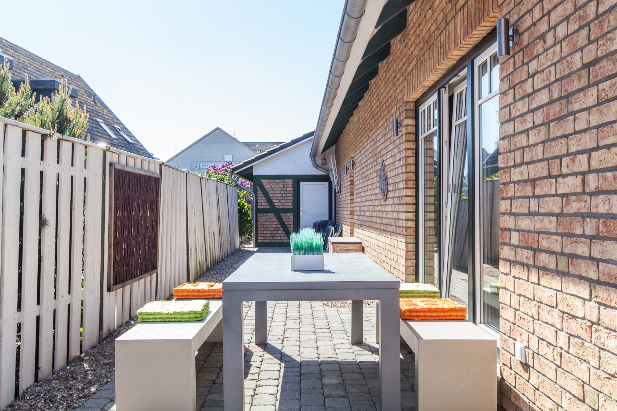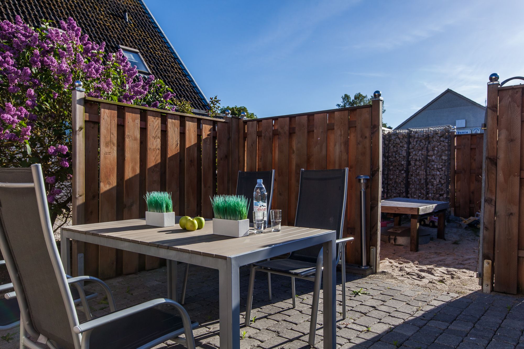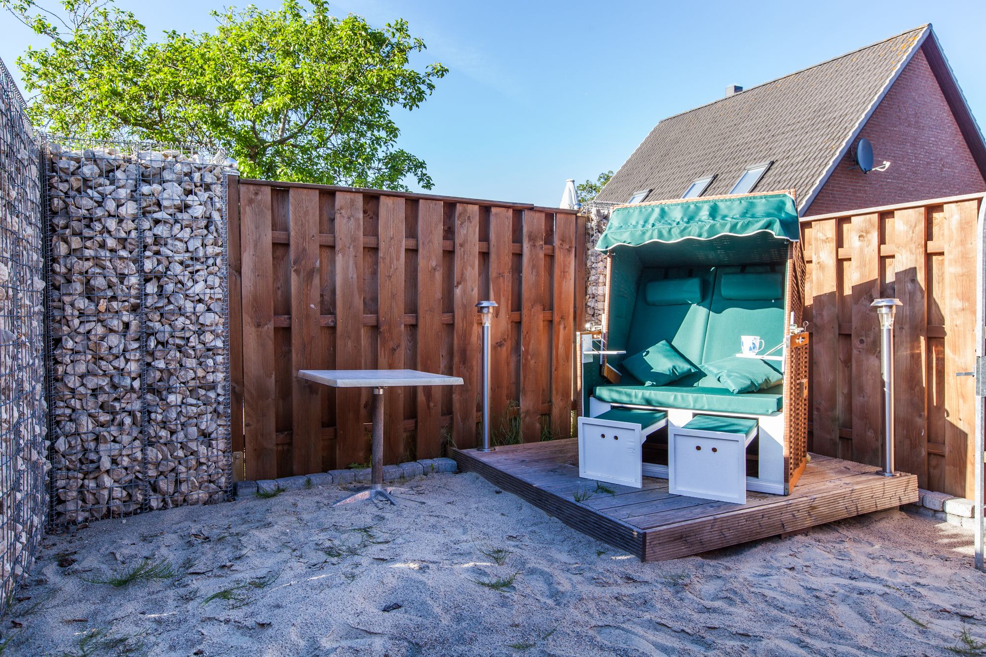 2 herrliche Terrassen und ein Strand / Sandgarten mit Strandkorb, Grill und Sonnenliegen.