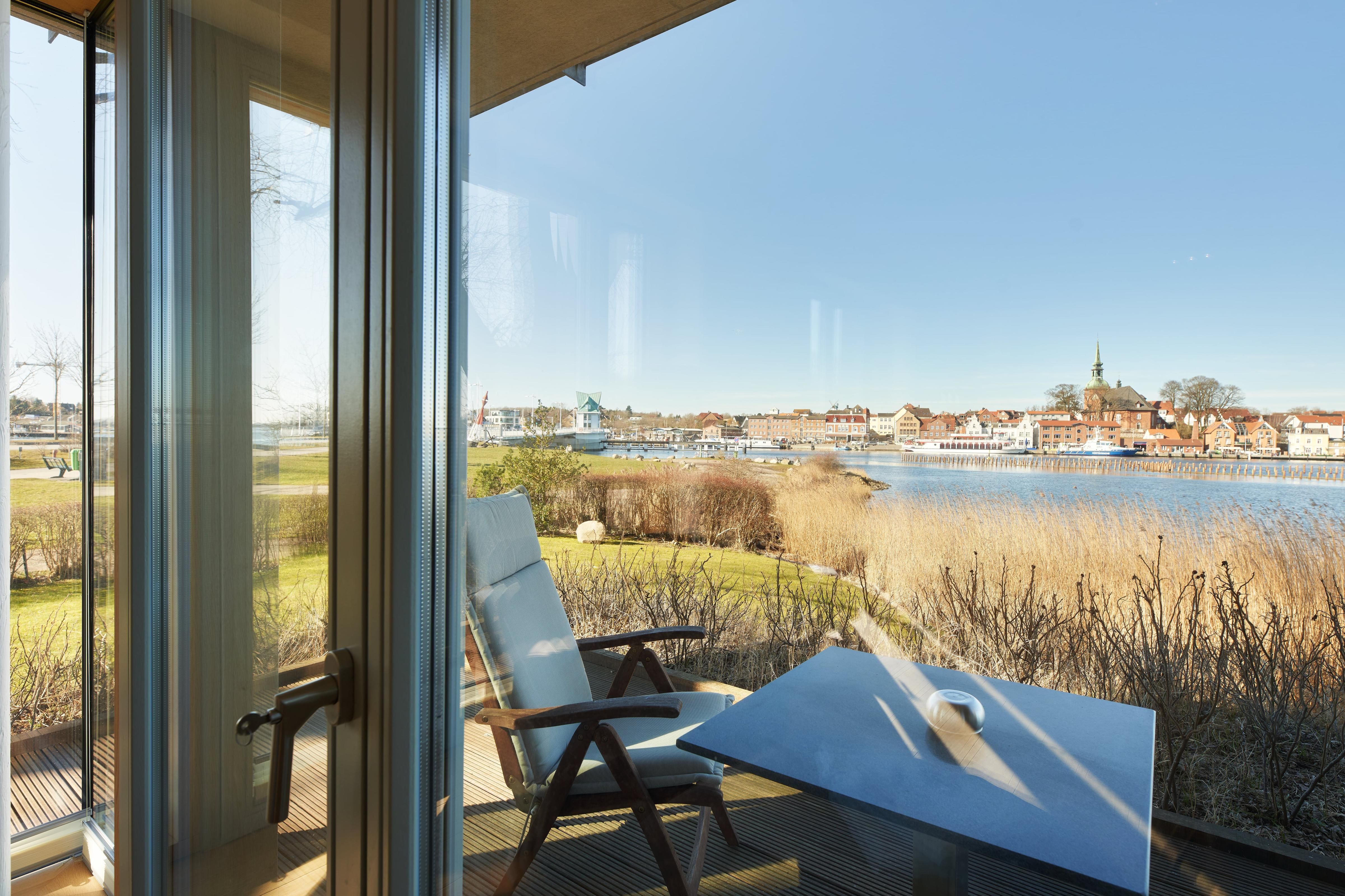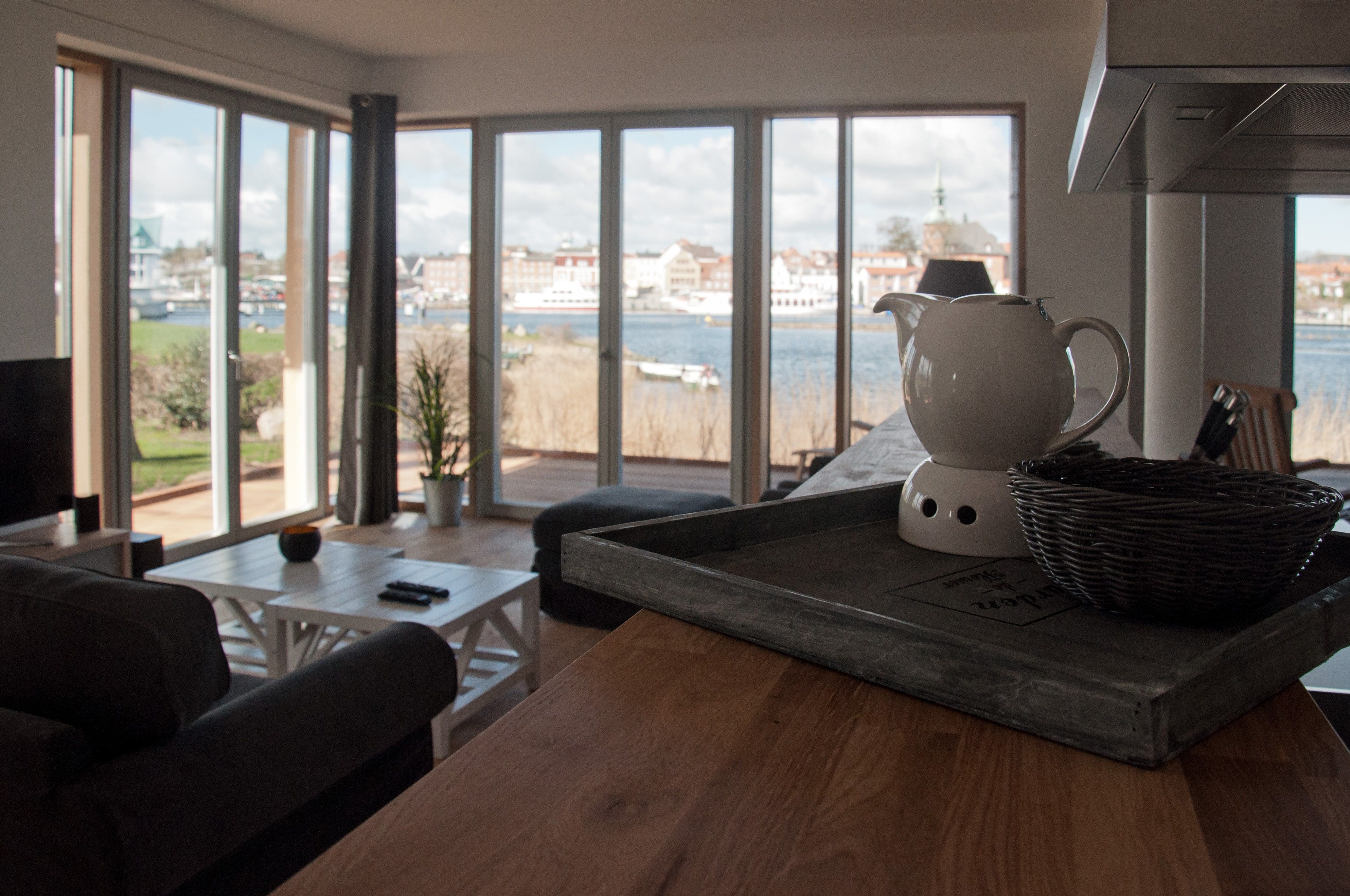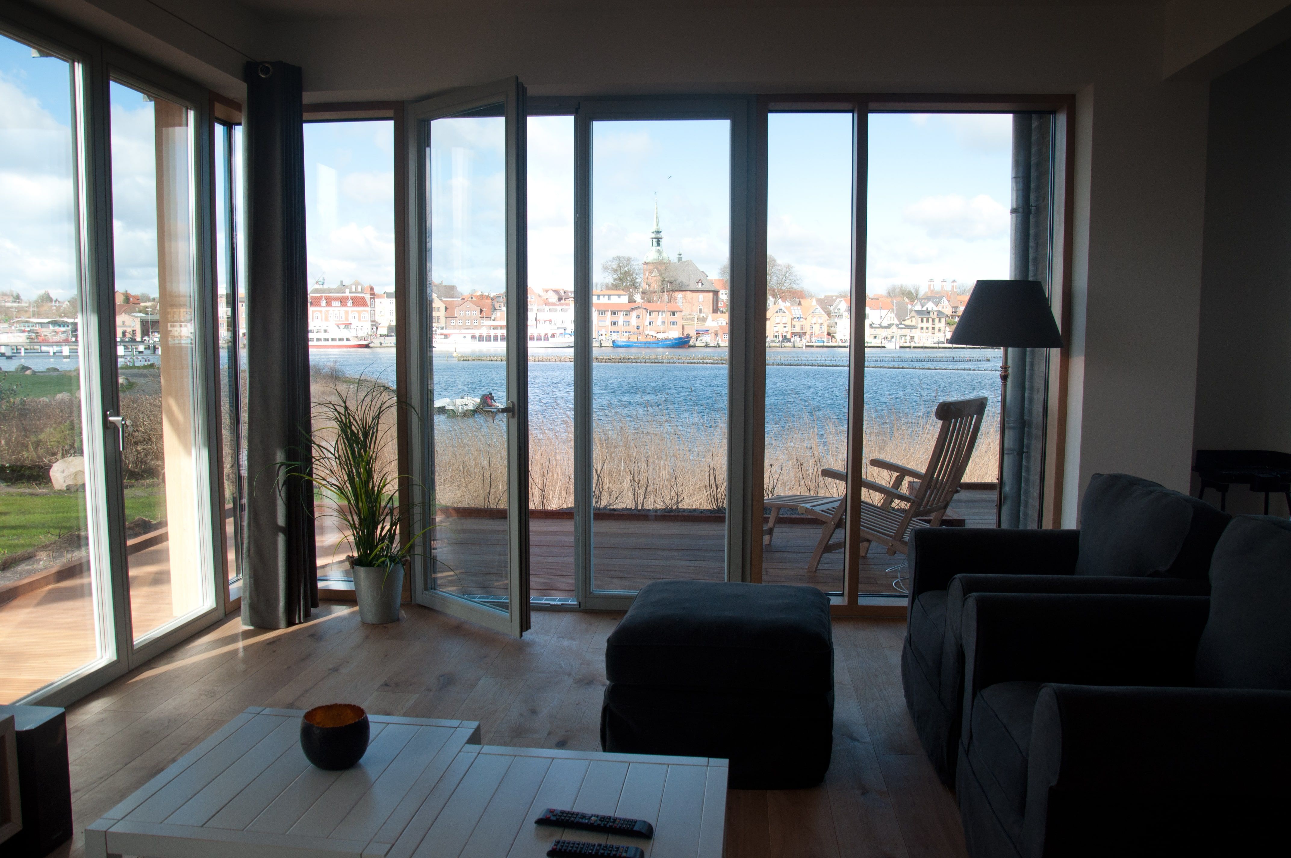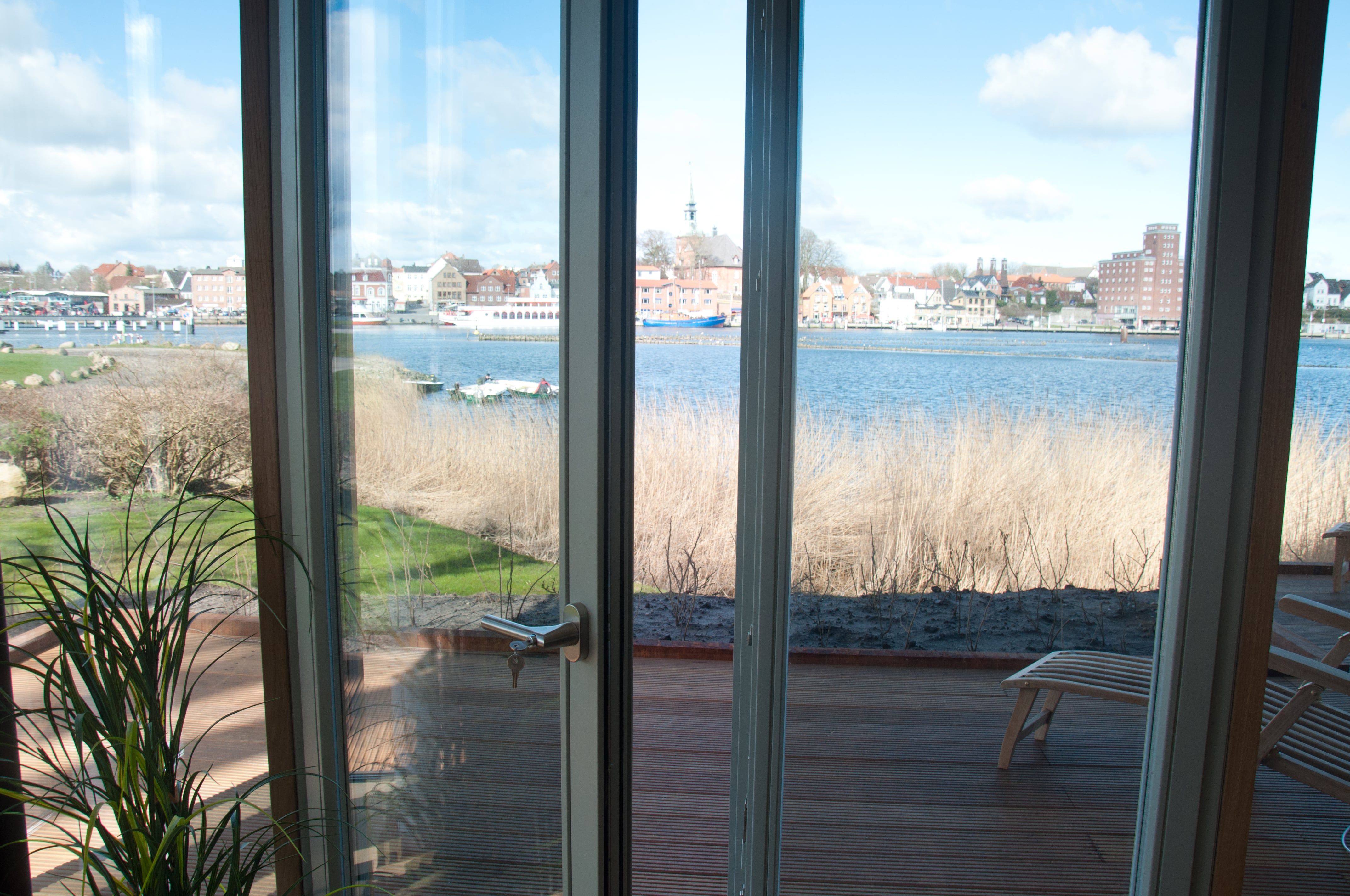 Leider fehlt eine Möglichkeit zur Abschattierung der Fenster zur Schleiseite. So kann man abends am Tisch nicht essen, da man in der prallen Sonne sitzt und die Butter davonläuft. Und man kann auch ab dem späten Nachmittag bis zum Sonnenuntergang nicht fernsehen, da nichts auf dem Bildschirm zu erkennen ist.