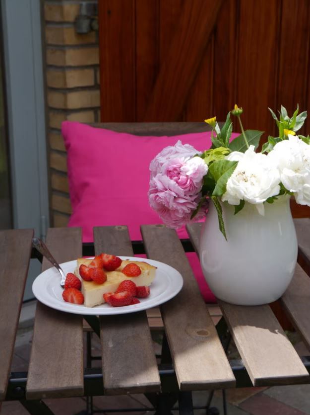 Die eigene Terrasse mit Gartenmöbeln ist dein Platz an der frischen Luft. Zusätzlich steht dir ein liebevoll angelegter Gemeinschaftsgarten mit Teich, Liegewiese und Sonnenliegen zur Verfügung – ideal zum Lesen, Sonnen oder einfach zum Nichtstun.