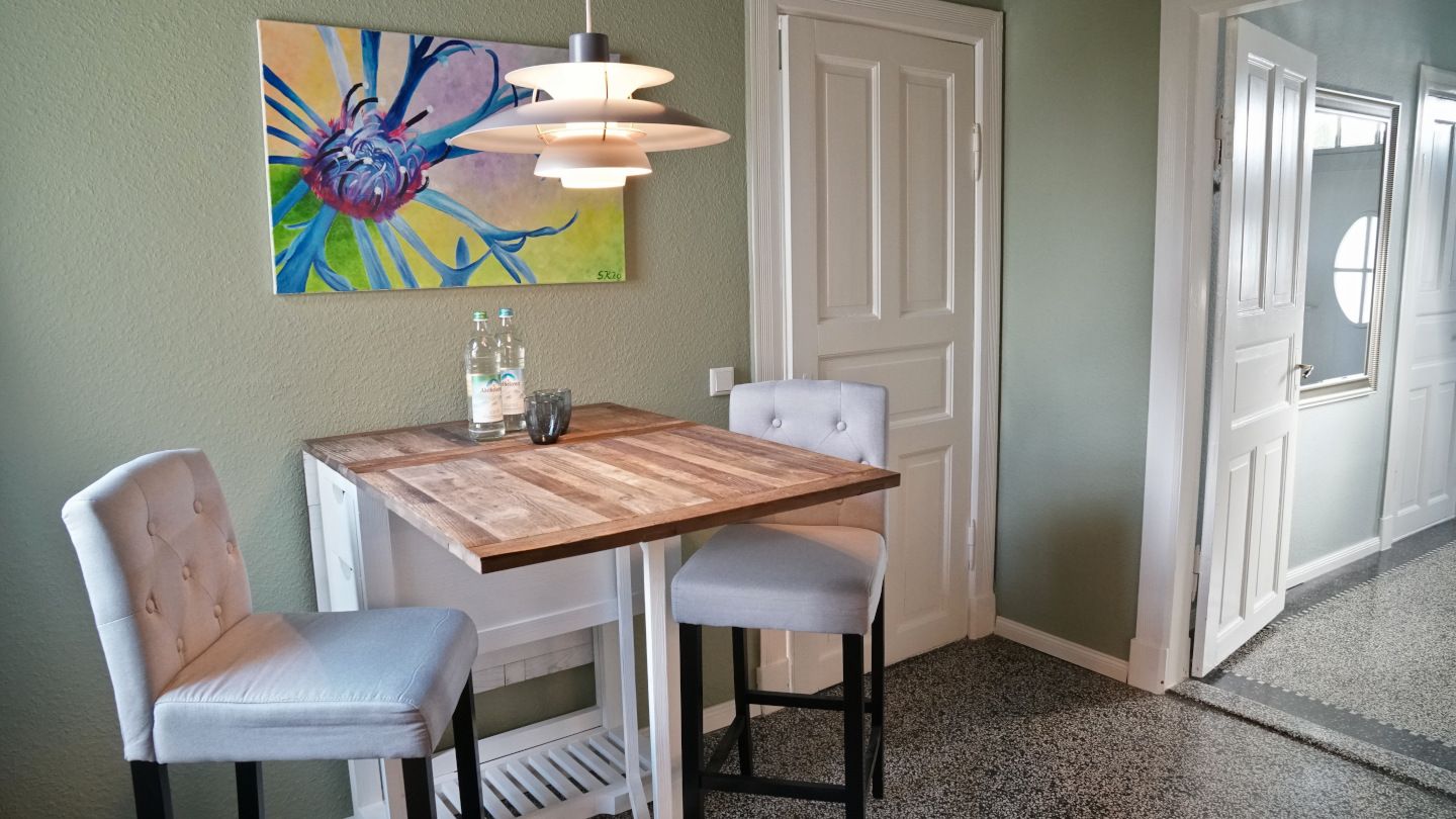 Meine Geschwister und ich hatten wunderbare Tage in Schaalby in Maries Haus - das Haus, in dem vor vielen Jahren unsere Großeltern (unsere Oma hieß Marie!) gewohnt hatten und wo wir als Kinder so oft zu Besuch waren hat mein Bruder zufällig im Internet (wieder)entdeckt. Das Haus ist wunderbar renoviert und perfekt ausgestattet. In der Küche fehlt es an nichts, alle Möbel sind sehr geschmackvoll und man fühlt sich sofort wohl. Sehr gut haben uns die warmen Wandfarben gefallen. Einen besonderen Charme hatte es für uns, dass der alte Steinfußboden in Küche und Flur, den wir aus Kindertagen noch kannten, unverändert (...und in enem Topzustand) ist und auch die Türen von damals gibt es noch! Die Speisekammer von Oma ist einem geschmackvollen modernen Duschbad gewichen und der verwunschene Dachboden mit alten Truhen und Möbeln ist zu einer lichtdurchfluteten Empore geworden, auf der ein Himmelbett mit herrlicher Aussicht in die Natur steht. Der Garten, in dem früher neben Erdbeeren, Erbsen und Wurzeln (Möhren)....die leckersten Kartoffeln auf der ganzen Welt wuchsen, darf natürlich nicht unerwähnt bleiben. Eine neue Terrasse nebst Strandkorb laden zum Entspannen ein. Im Garten wächst kein Gemüse mehr aber die alten Obstbäume stehen immer noch. Es ist himmlisch ruhig in Schaalby und der Blick über die Felder ist einfach herrlich. Bis Schleswig ist es nicht weit und auch wenn unser Blick durch die Geschichte, die dieses Haus für uns hat, besonders ist, so geben wir eine klare Empfehlung für einen Urlaub in Maries Haus.