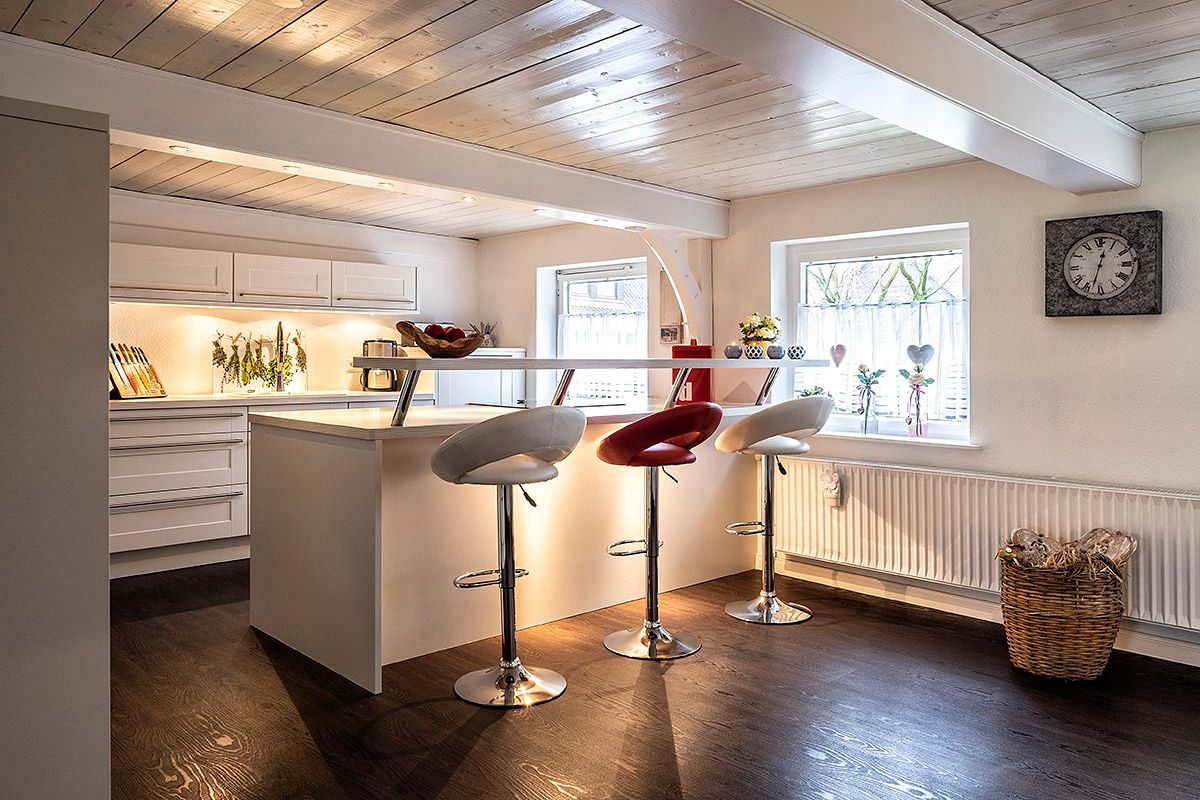 Wer auch immer in der Küche stand und etwas zubereitet hatte, war nie alleine. Denn die Plätze Am Tresen zur Arbeitsplatte mit den drei großen Barhockern war immer belegt. Alleine das, war ein wunderschönes Familienerlebnis.