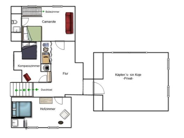 Die Schlafzimmer auch super. Allerdings hat es doch ein paar Tage gedauert, bis wir uns an die "alte Schiffstreppe" gewohnt haben ;-)