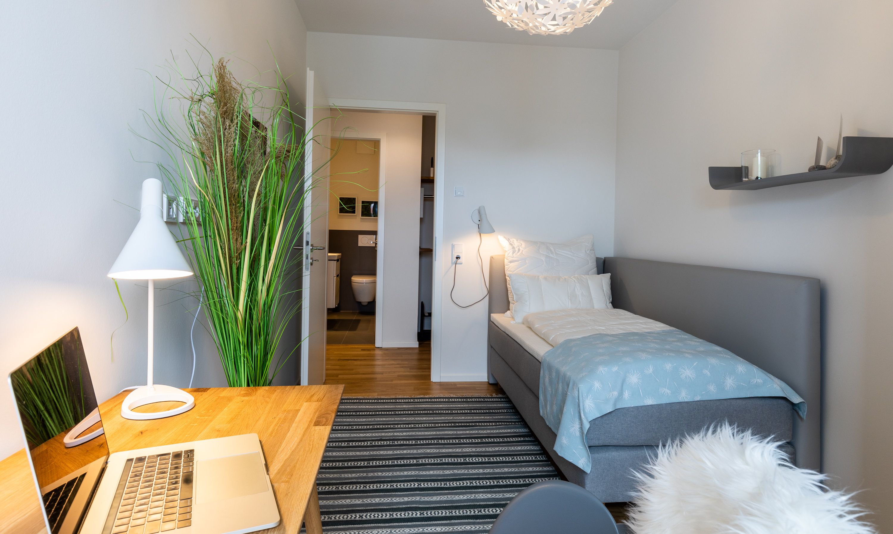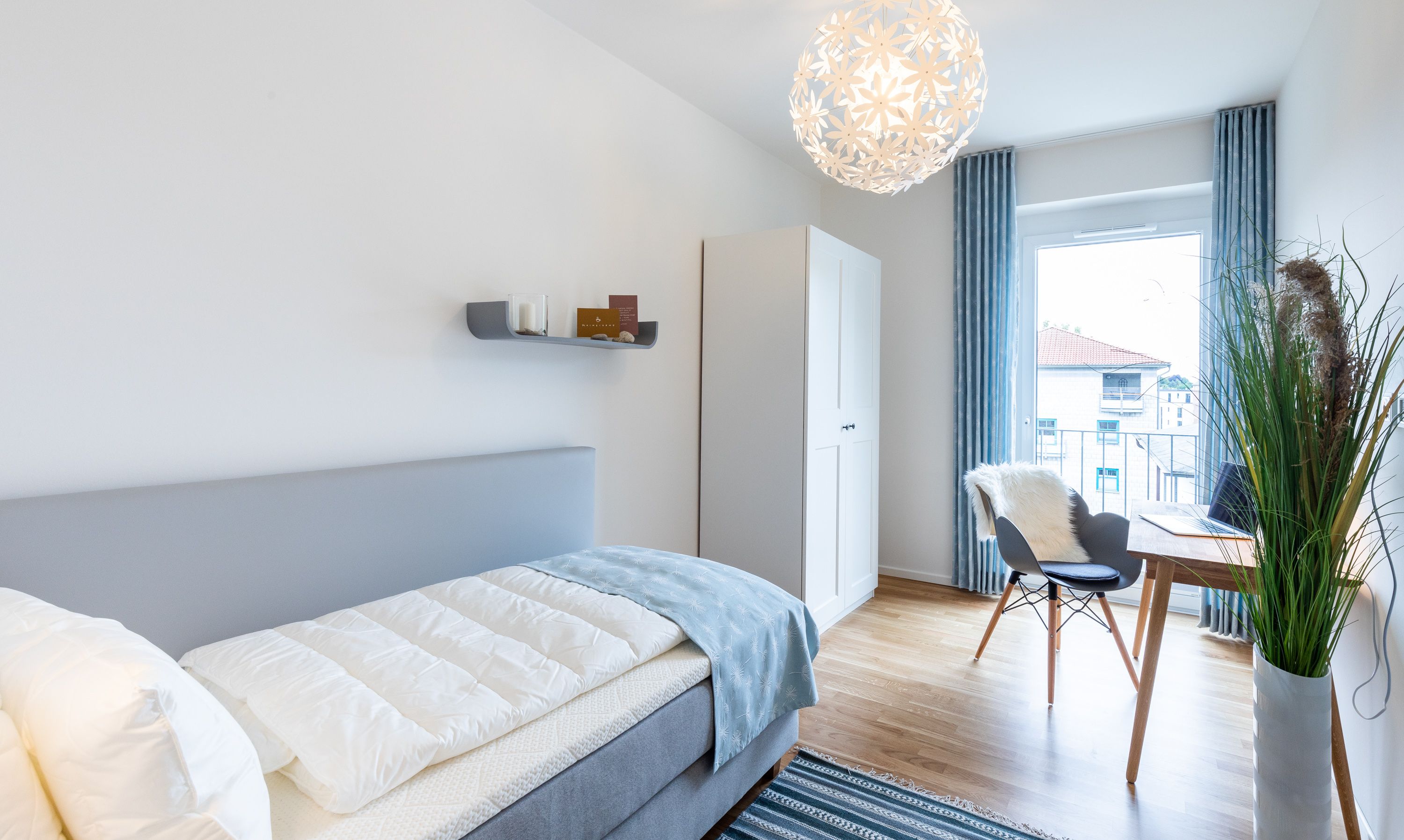 Die Wohnung eignet sich gut für Workation, da ein Schreibtisch und genügend Raum vorhanden ist.
