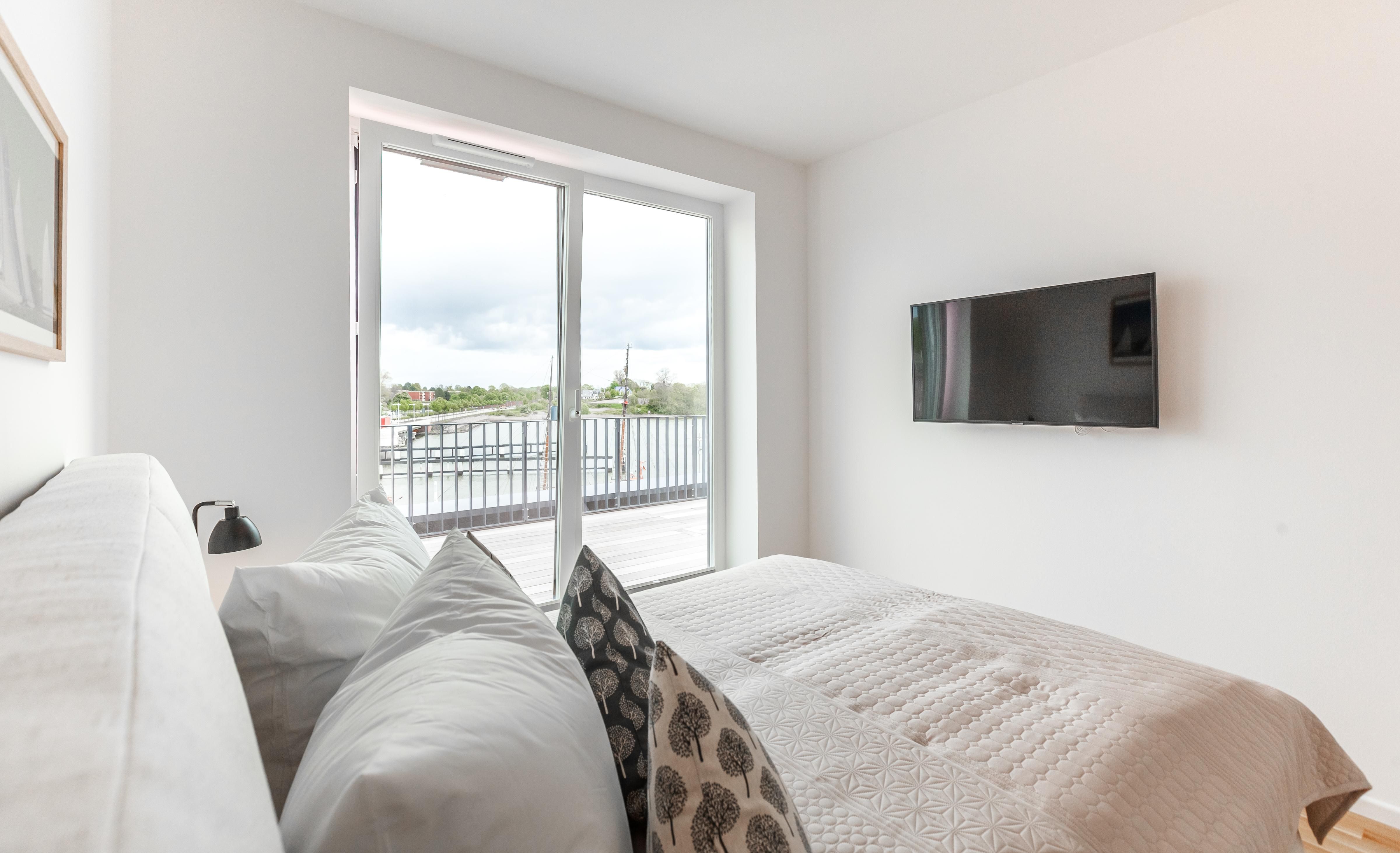 Eine sehr schöne,saubere Ferienwohnung mit einen tollen Blick auf dem Hafen und der Schleibrücke.
