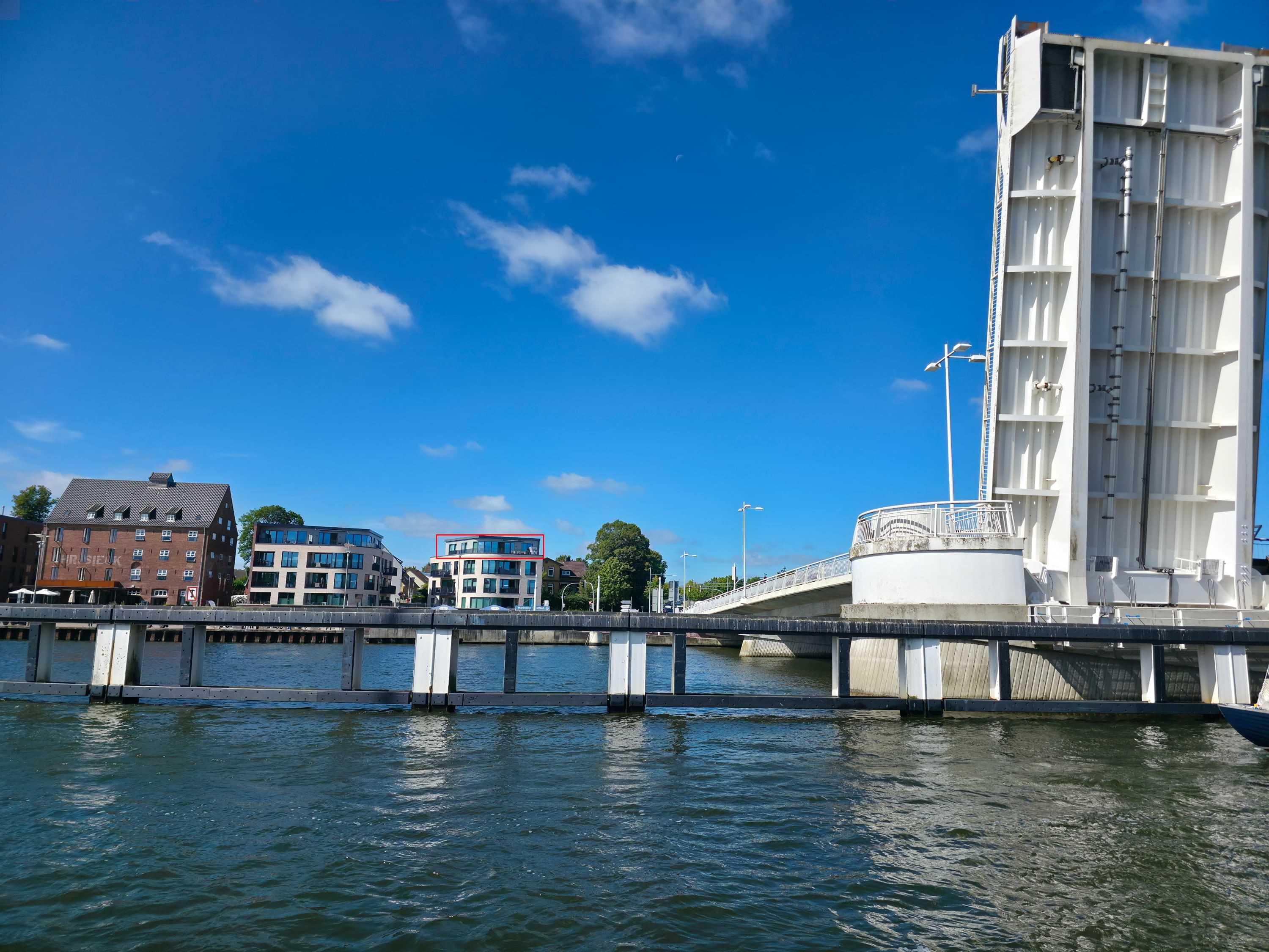 Super Objekt in top Lage direkt an der Schlei, von der großen Dachterrasse hat man einen direkten Blick auf die Klappbrücke und den Hafen.