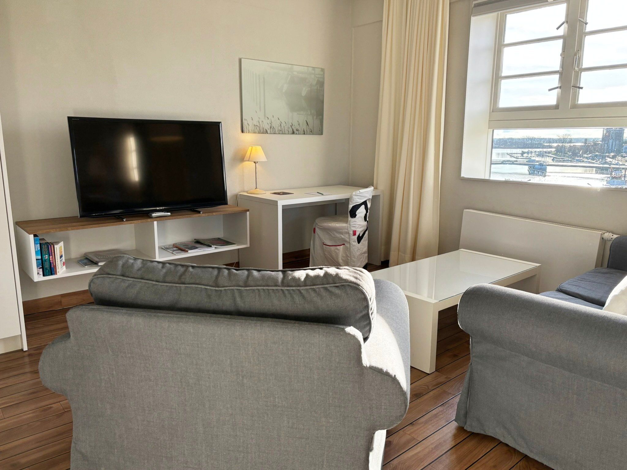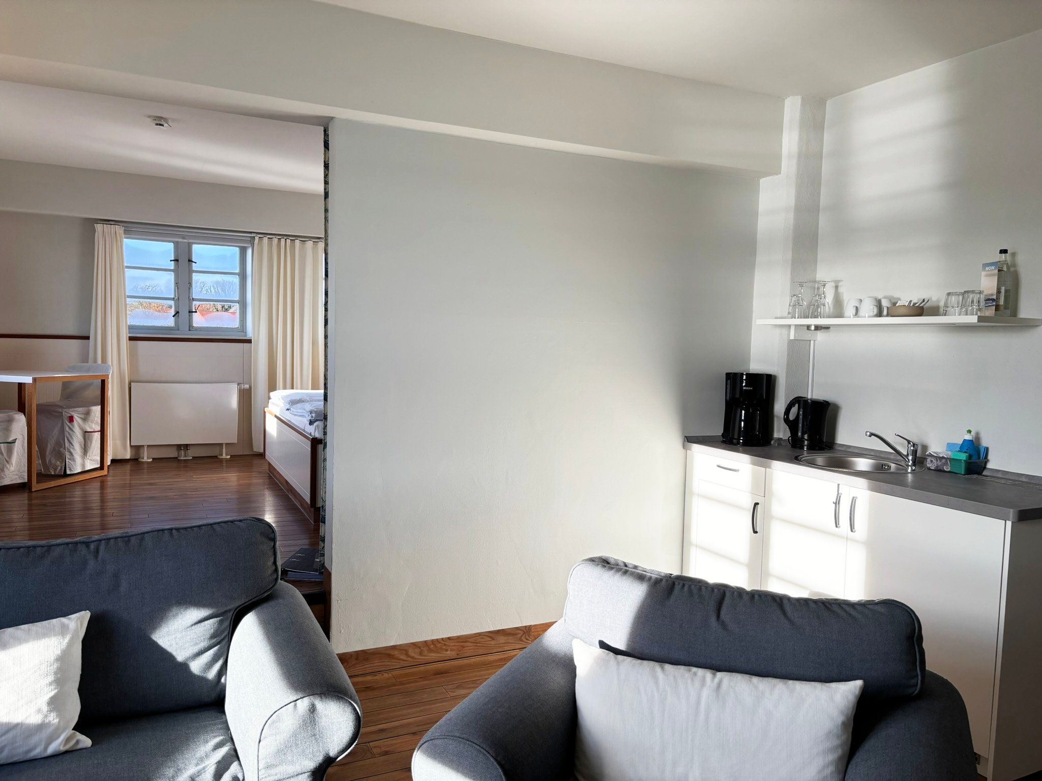 Studio-Schleiblick Pier 15: 1-Zimmer-Appartement im denkmalgeschützten Ambiente des ehemaligen Getreidespeichers am Kappelner Hafen.
