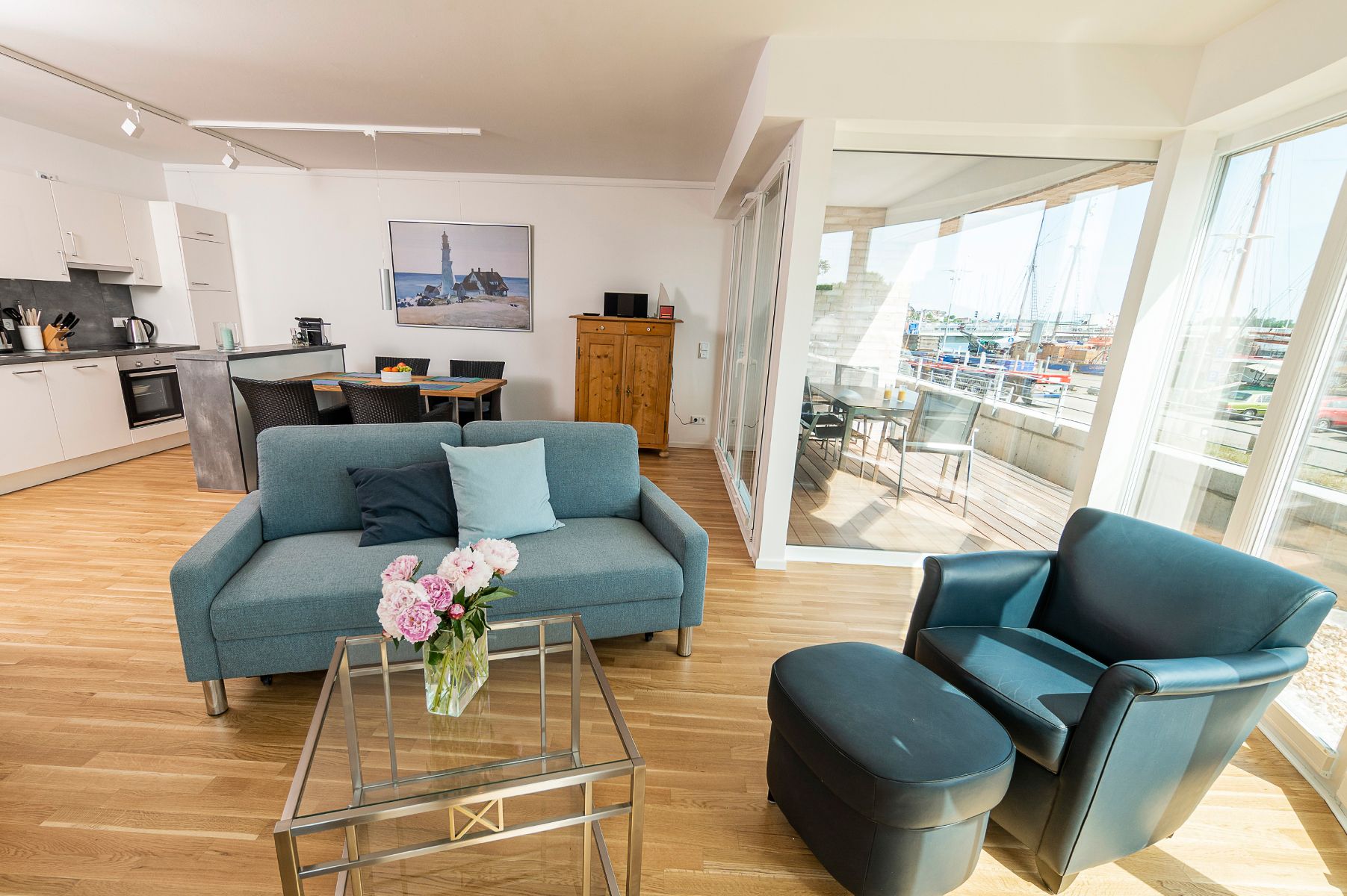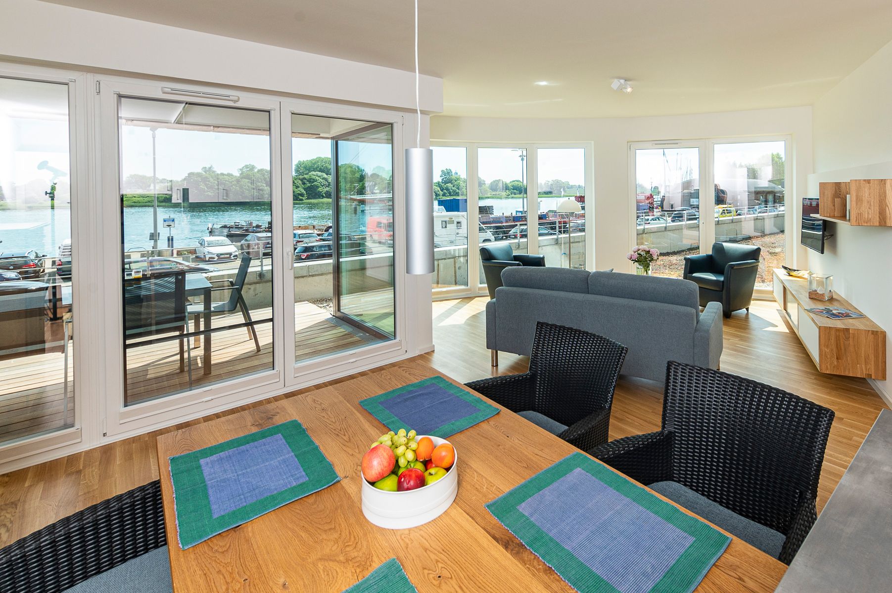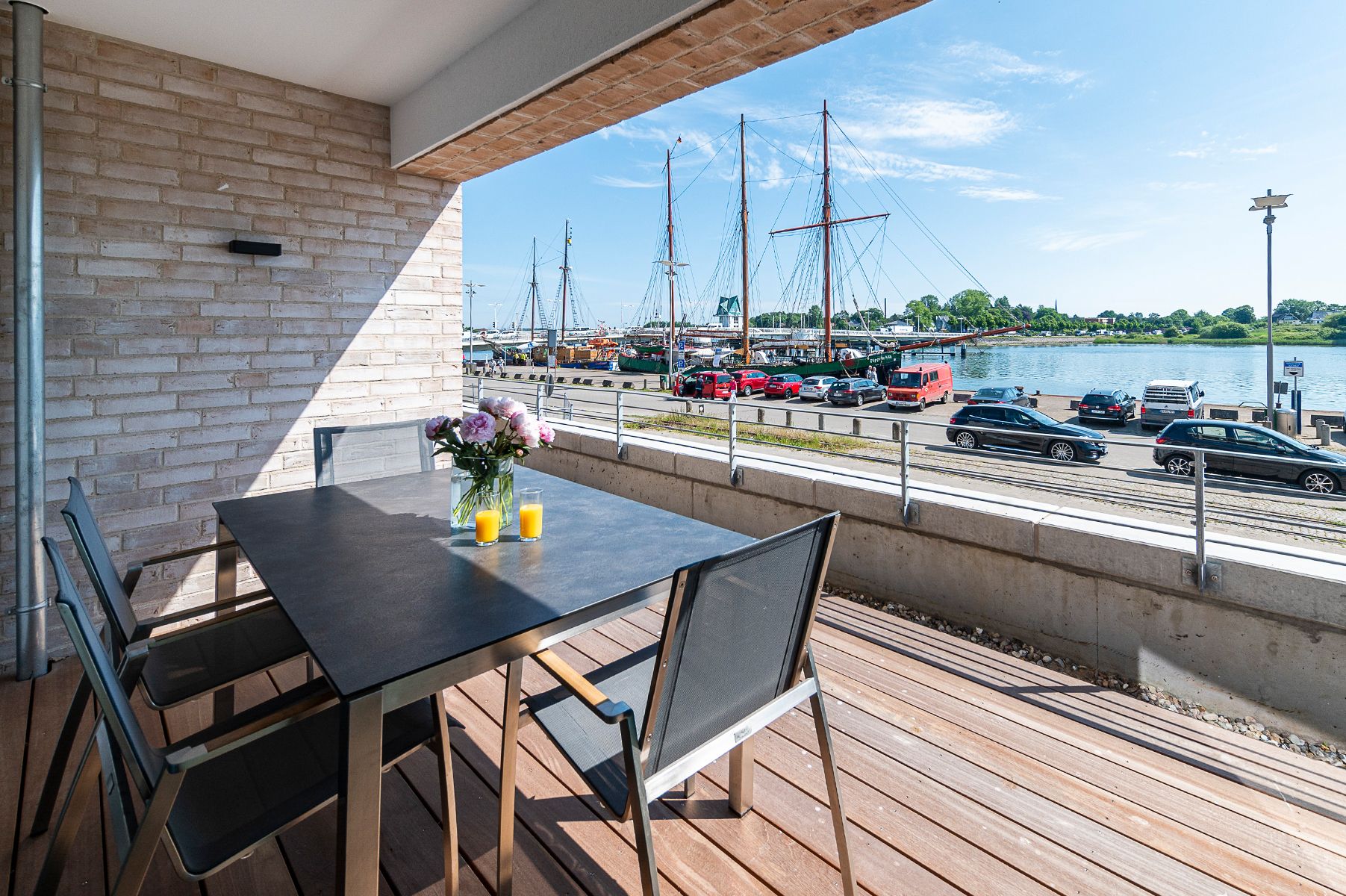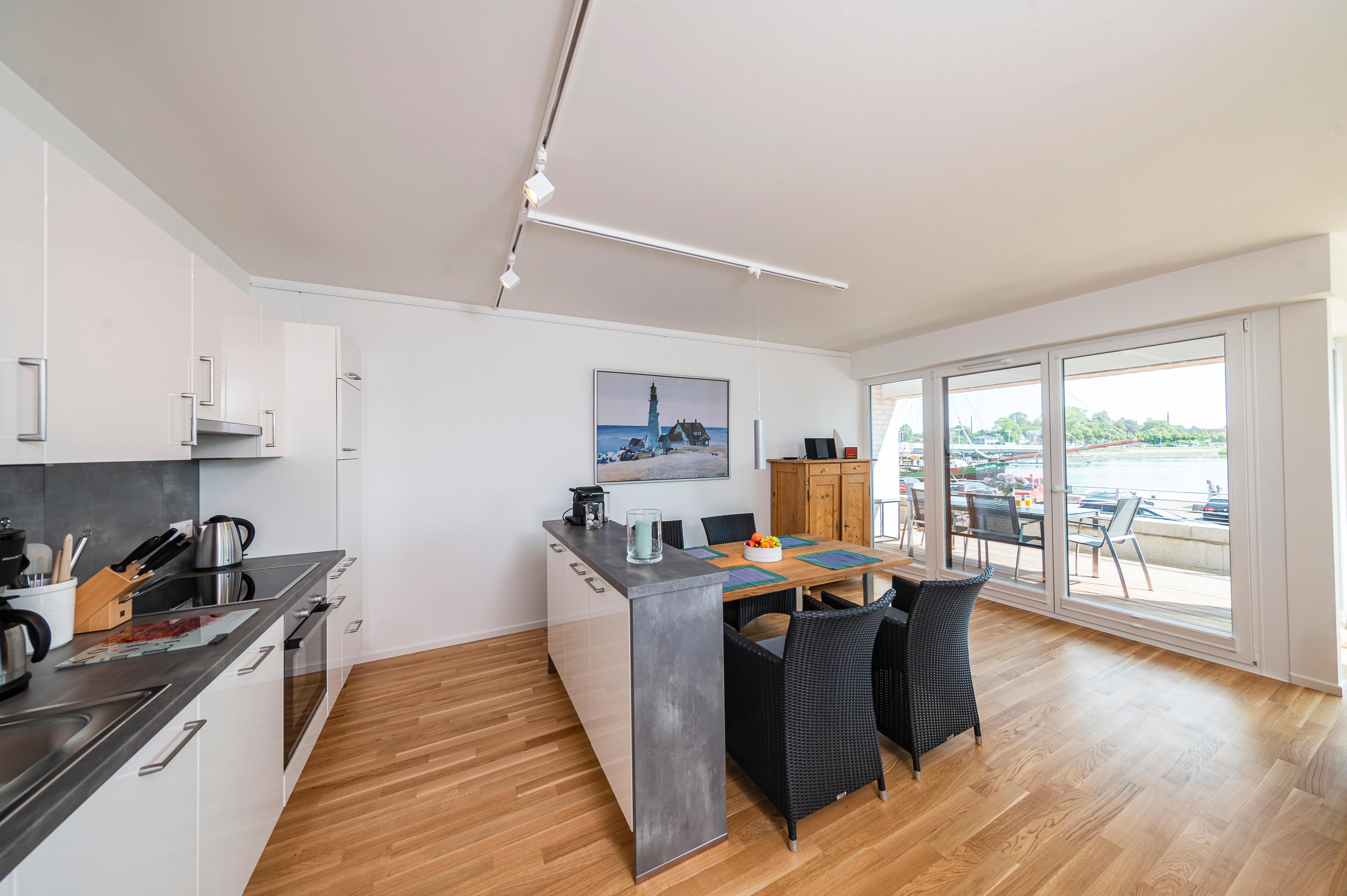 Die hervorragende Lage mit Blick auf die Schlei/Klappbrücke wird noch übertroffen von der hochwertigen und geschmackvollen Einrichtung und Ausstattung der Wohnung.
