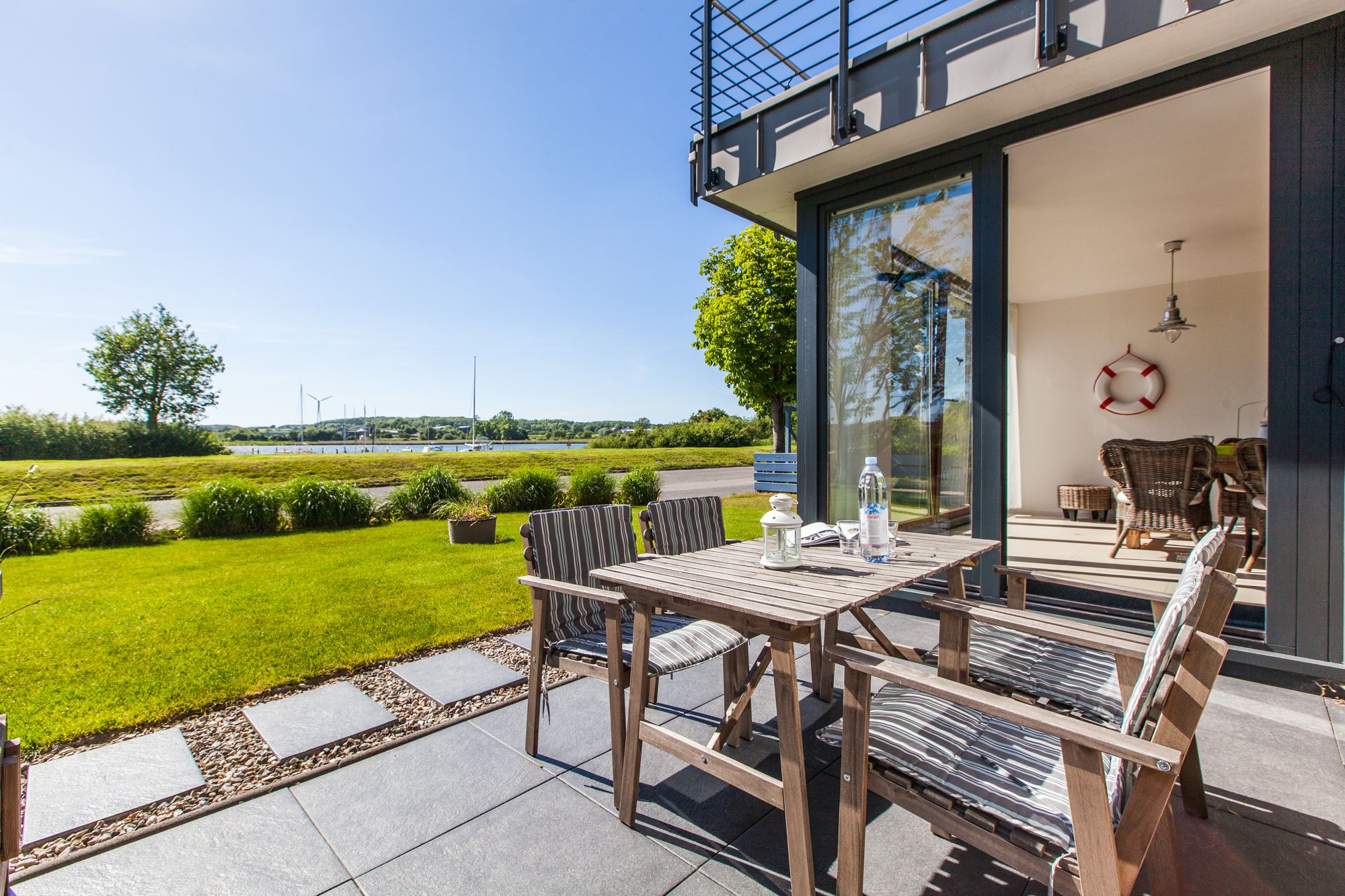 Auf der Terrasse haben wir auch viel gesessen. Der Blick auf die Schlei ist traumhaft schön.