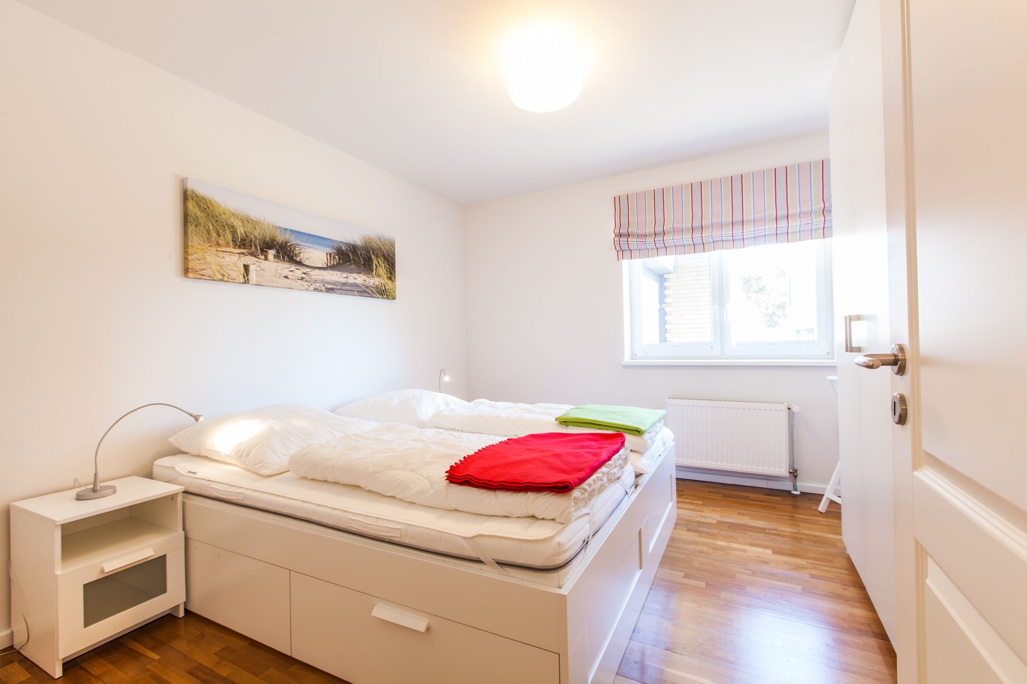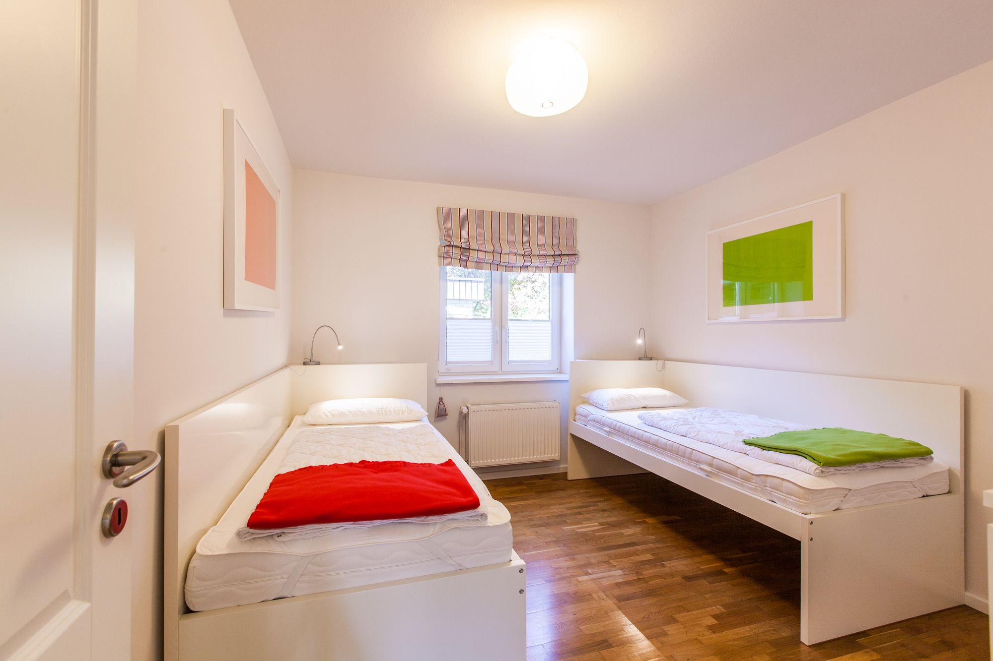 Ein Doppelschlafzimmer (2x 90x200 cm) und ein Schlafzimmer mit 2 Einzelbetten (je 90x200 cm).