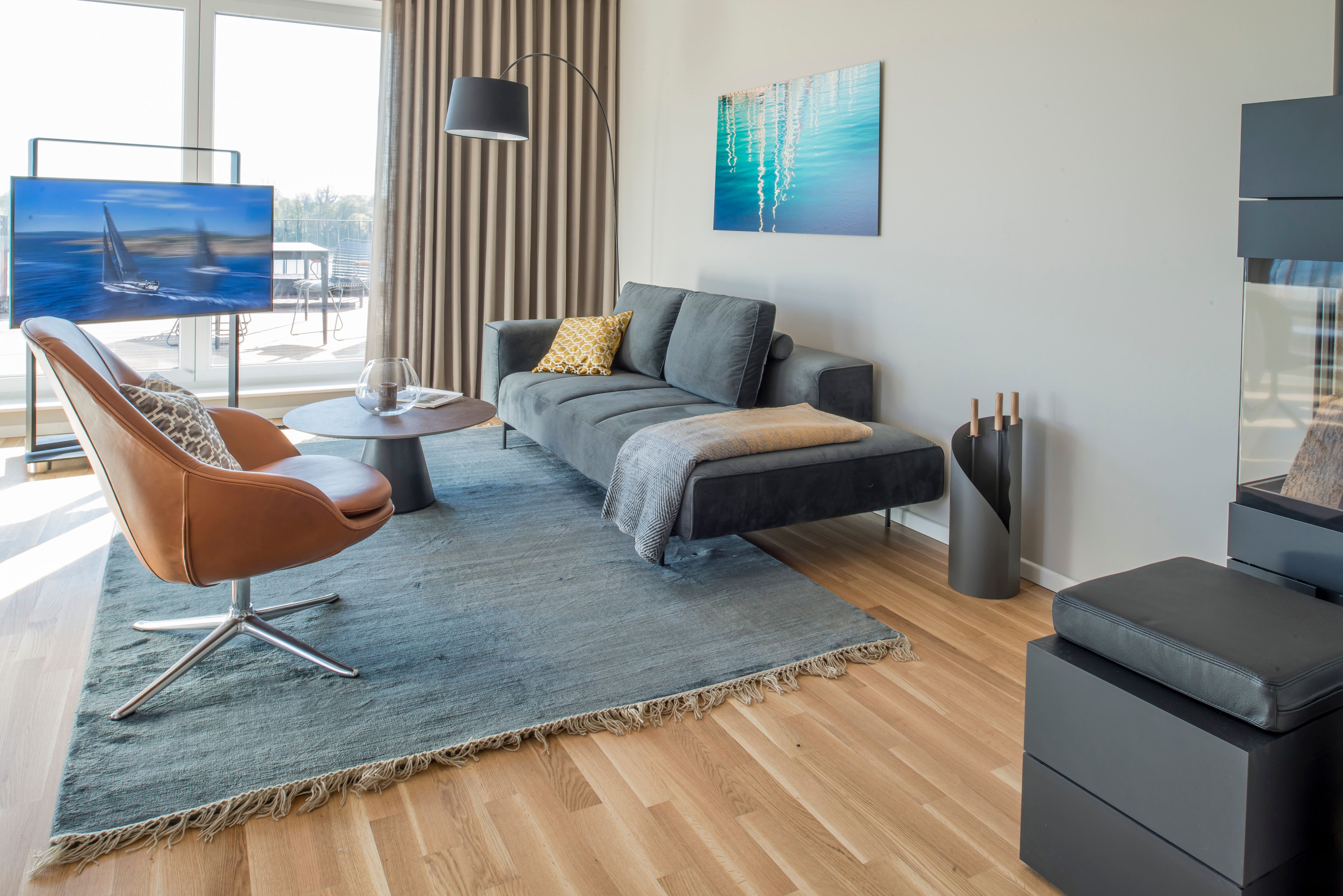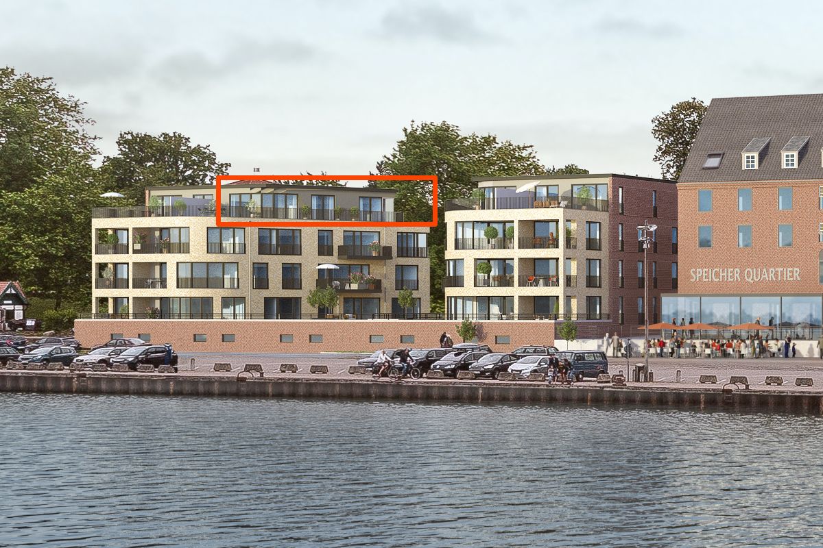 Ausstattung, Lage und insbesondere die Aussicht auf Kalleln`s Hafen mit Schleibrücke sind einmalig.