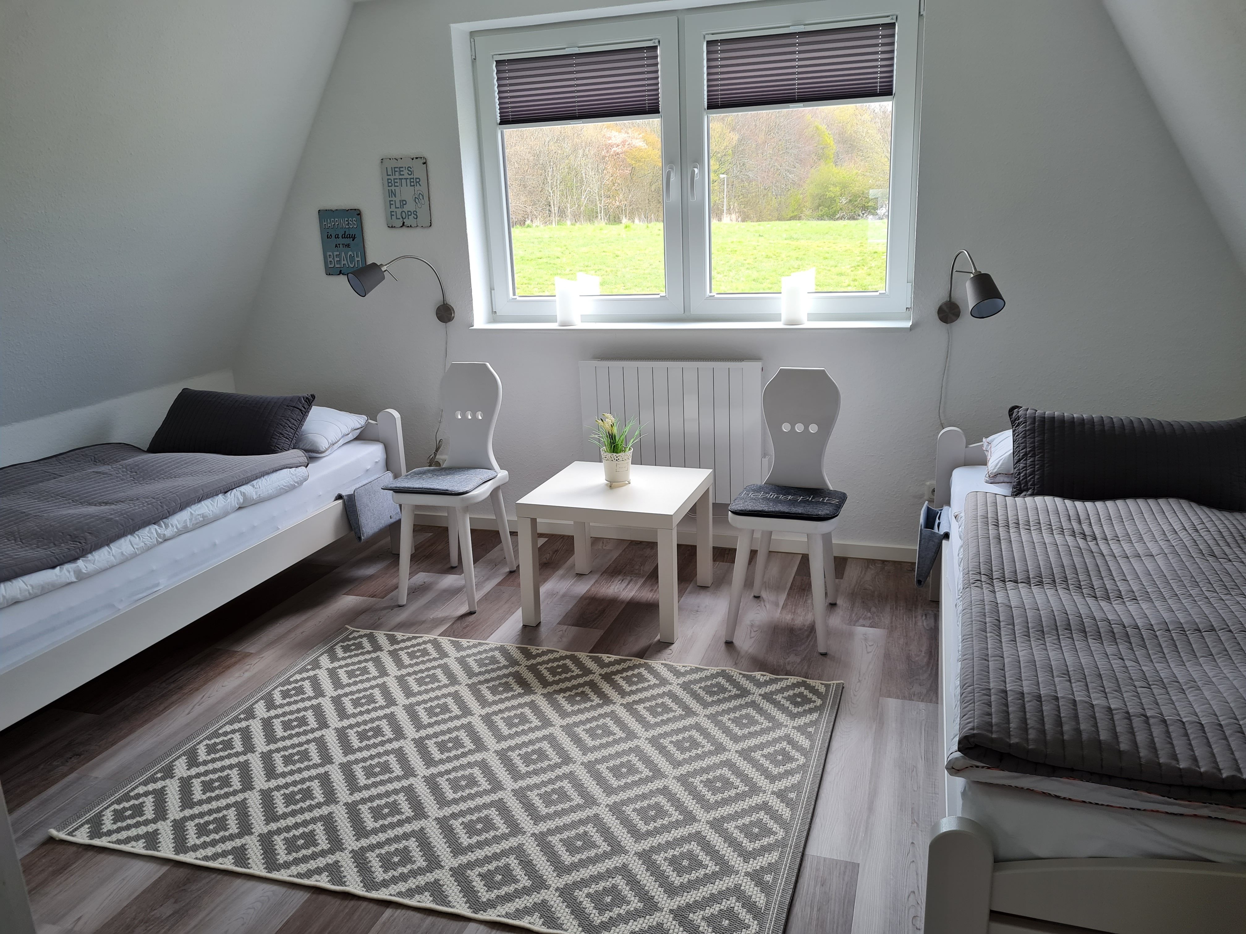 Wir waren über das Wochenende an der Schleu auf einer Hochzeit und hatten das Glück hier eine schöne Zeit verbringen zu dürfen. Schon die Kommunikation im Vorfeld war hervorragend - schnell und reibungslos! Wir haben im Vorfeld die Bilder online gesehen und waren überrascht, wie geräumig die jeweiligen Räume waren - für 4 Personen super passend!