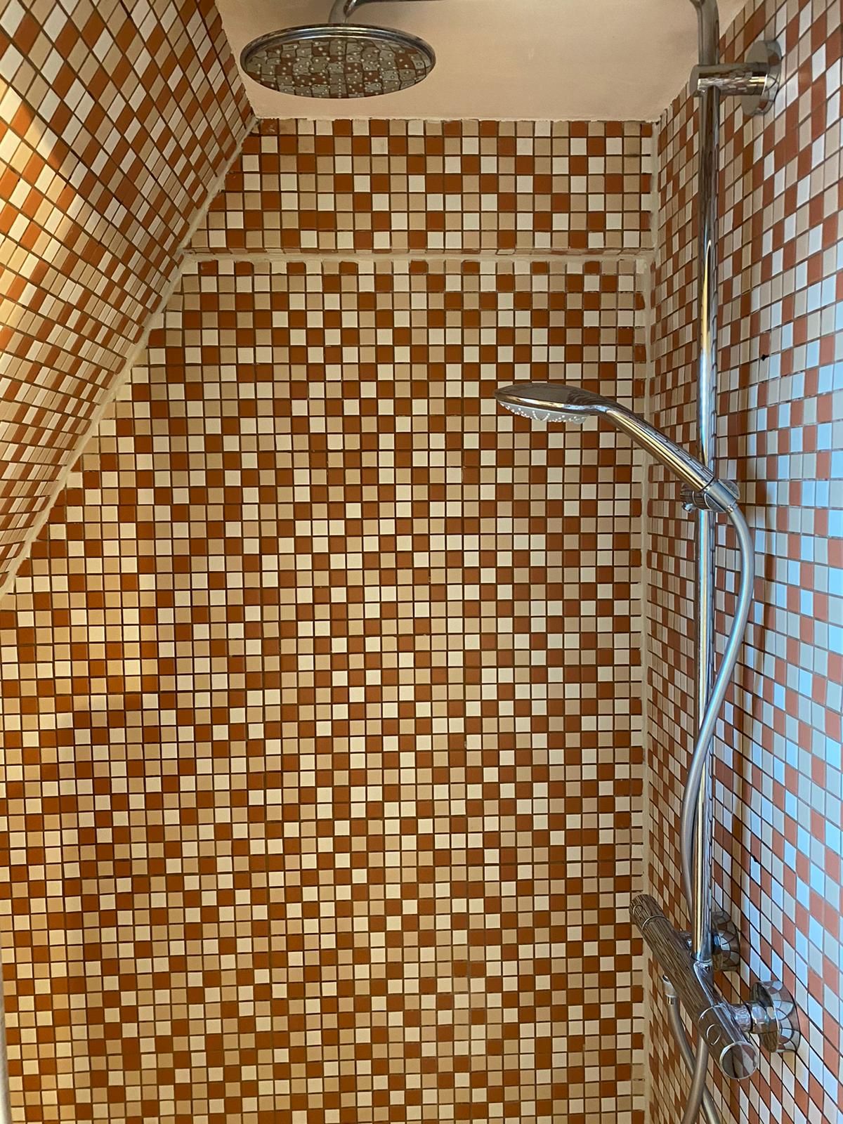 Das Badezimmer im EG verfügt über eine Dusche, Haartrockner und Fenster.