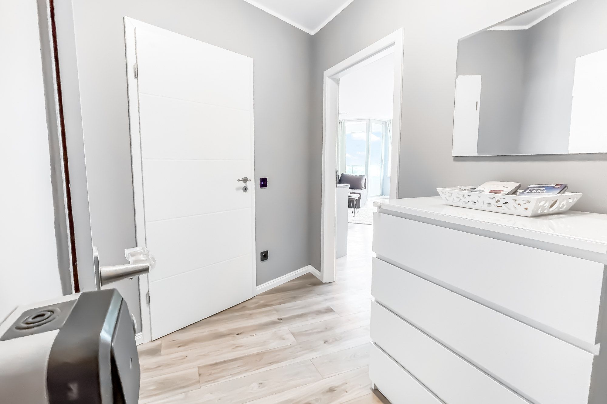 Wunderschöner weiter Ausblick; großer, lichtdurchfluteter Wohnraum; es fehlte eine Teekanne und ein Abwaschschwamm; ein Hinweis, dass der Schlüsseltresor nur etwa handgroß ist und in Knöchelhöhe am Gitter angebracht ist, wäre hilfreich gewesen
