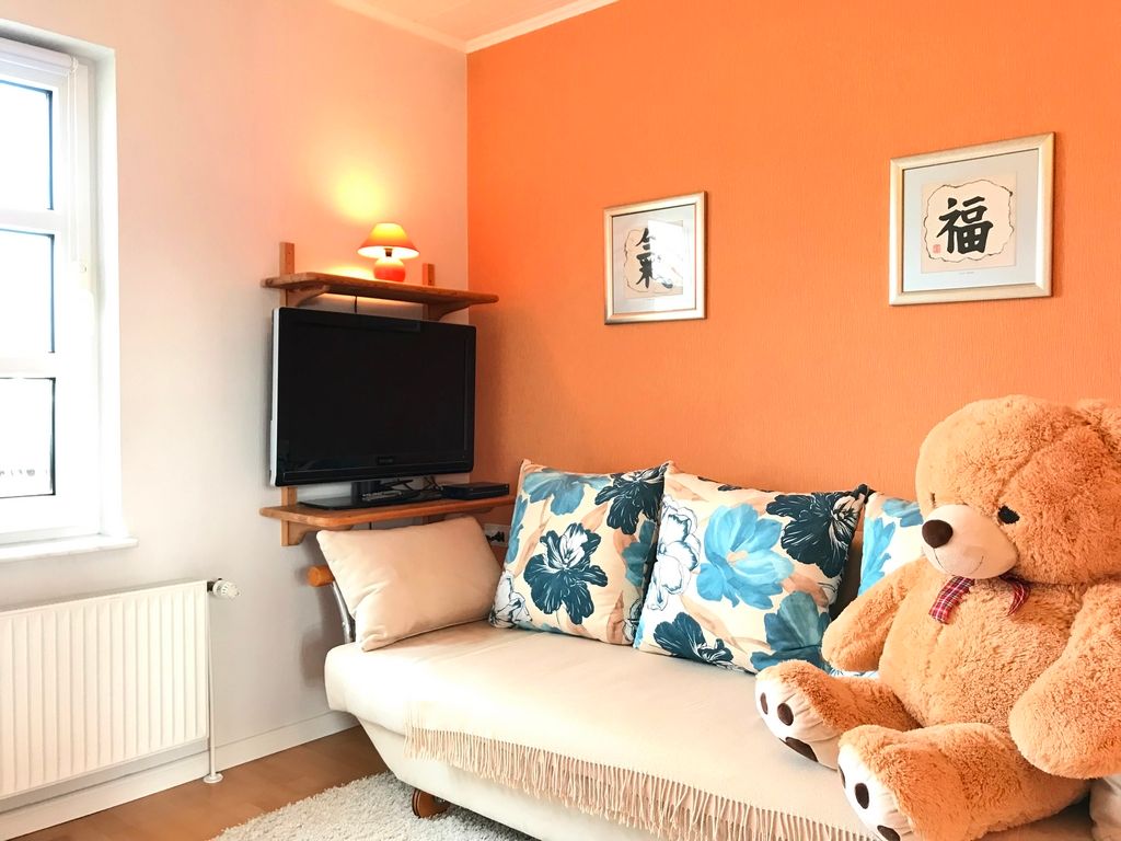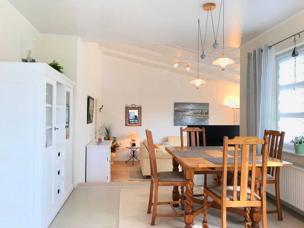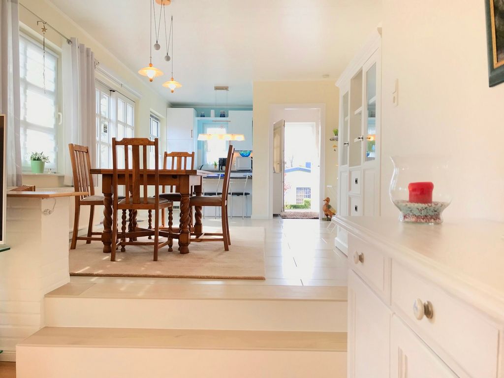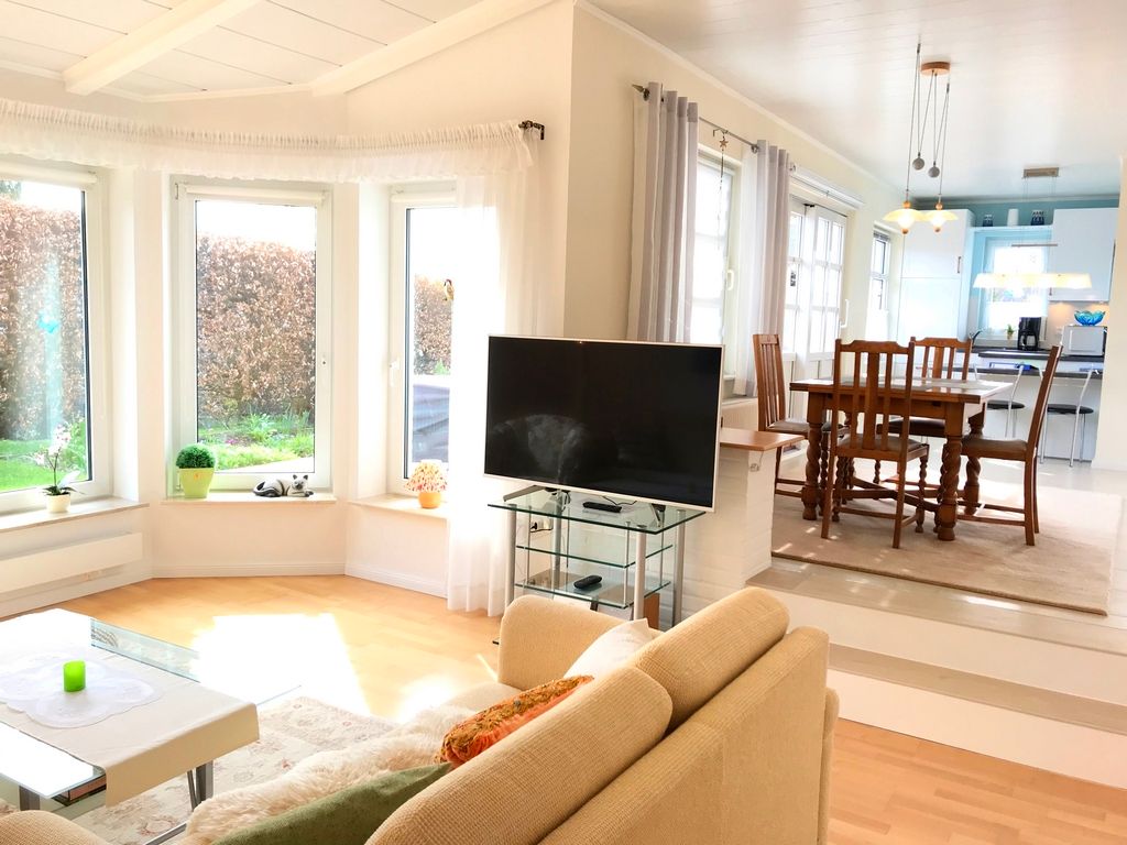 Sehr schönes, kleines Ferienhaus. Ruhig, in einer Seitenstraße gelegen, das Grundstück umzäunt, eingewachsen und nicht einsehbar. Die Einrichtung ist sehr geschmackvoll und modern, mit großem Ecksofa und einem Stressless Fernsehsessel. Direkt vor dem Wohnzimmerfenster kann man die Vögel am Futterhaus beobachten, ab und zu kommt auch ein Kaninchen vorbei.