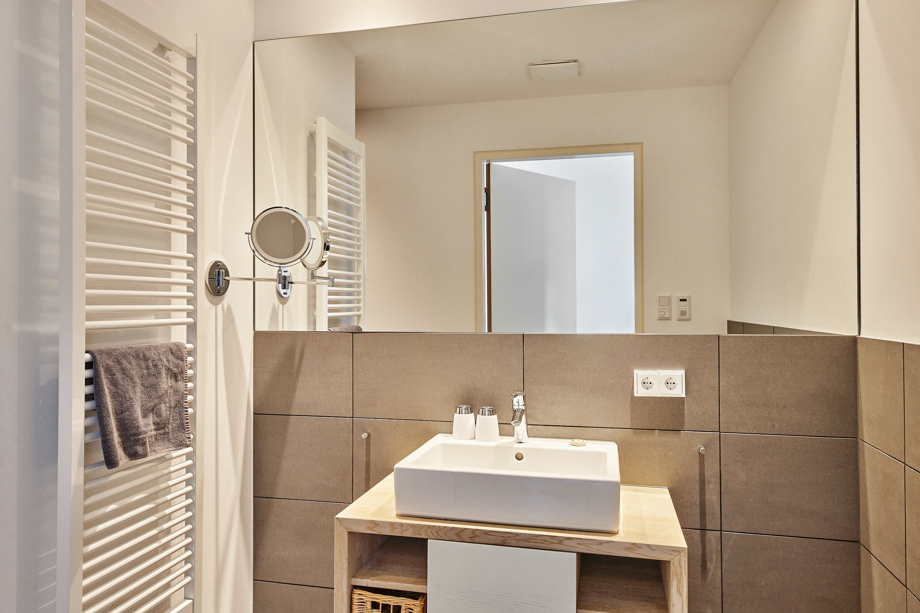 Einziger minimaler Abzug, dass die Handtuchaufhänger zu niedrig angebracht wurden.