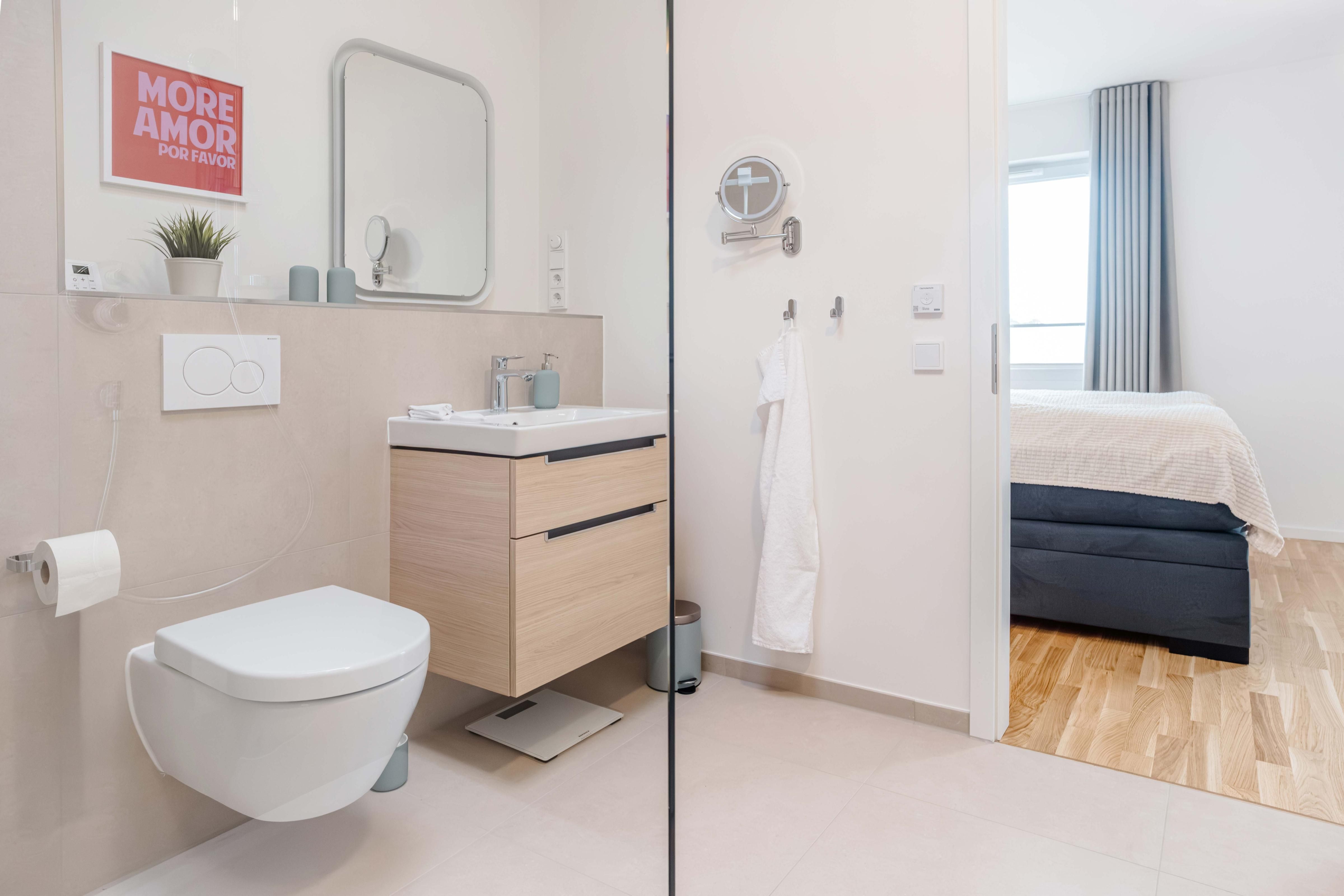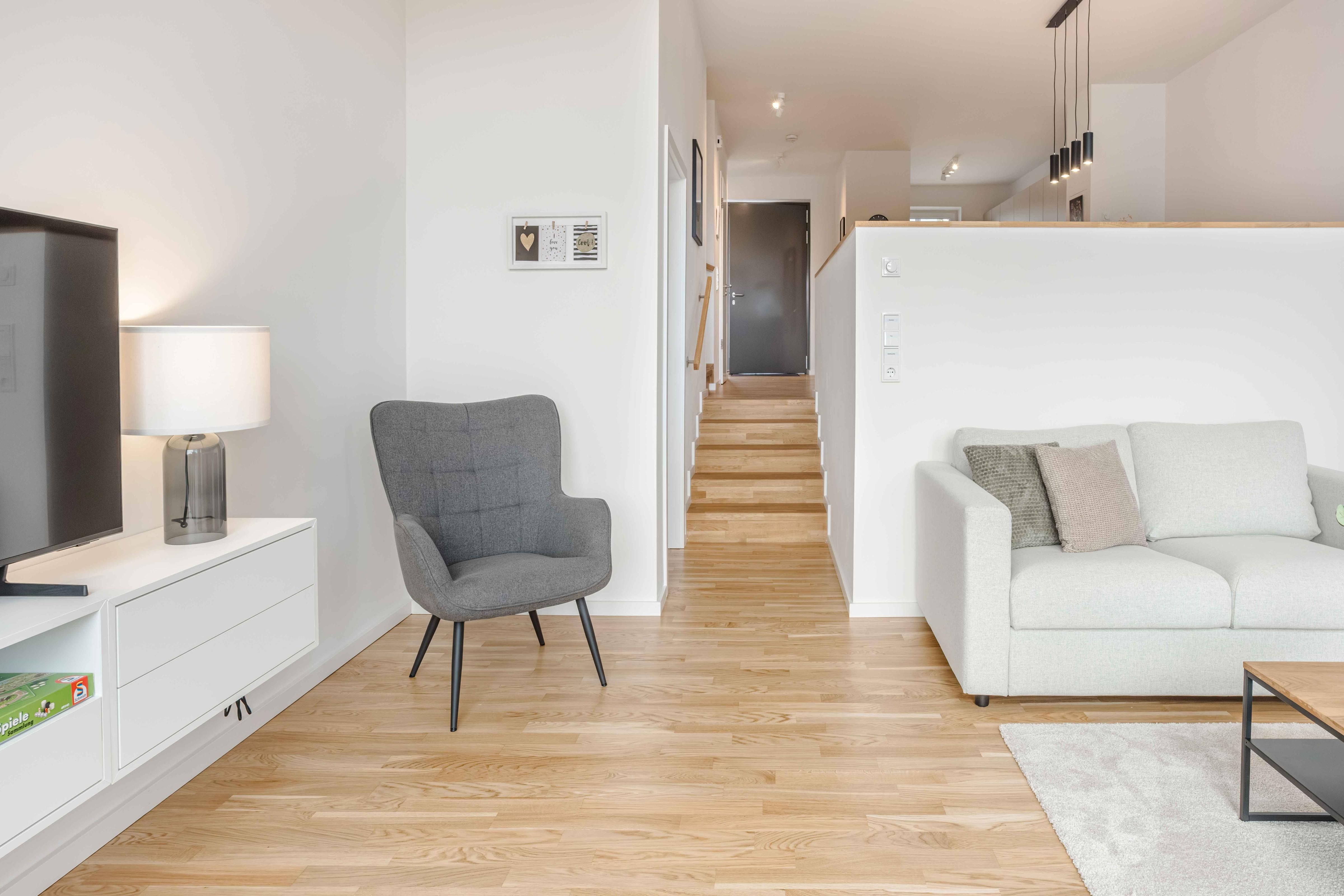 Annehmlichkeiten: Fußbodenheizung in allen Räumen, Sichtschutz in den Schlafzimmern, Waschmaschine zur Eigennutzung.